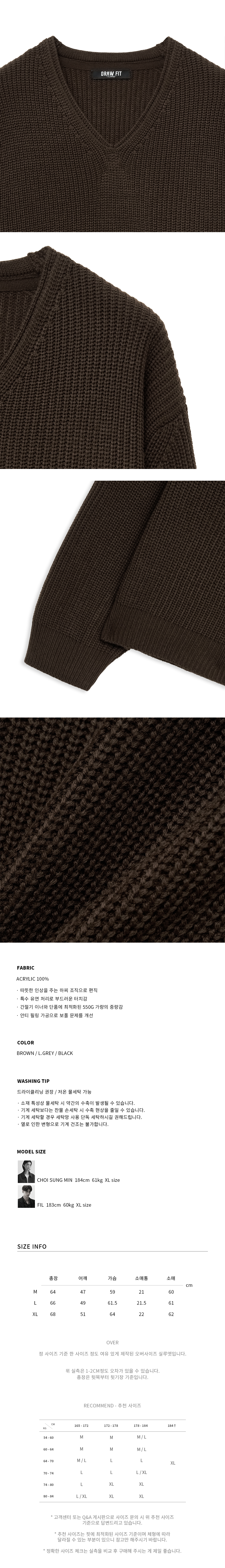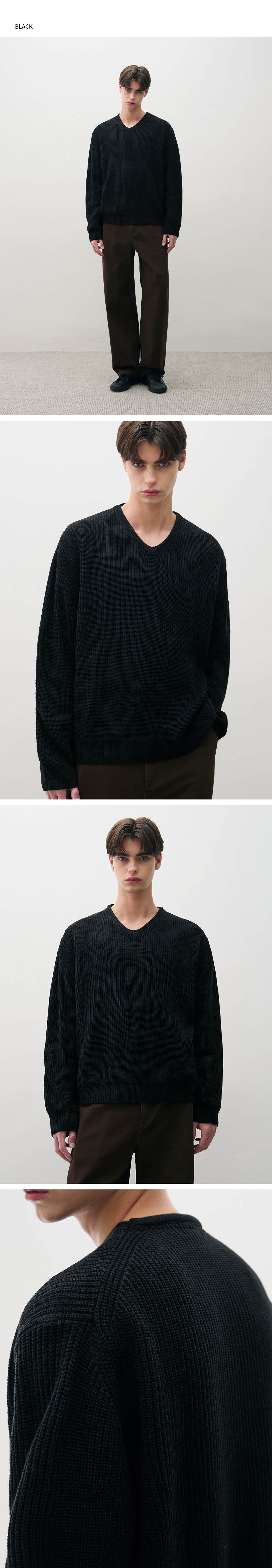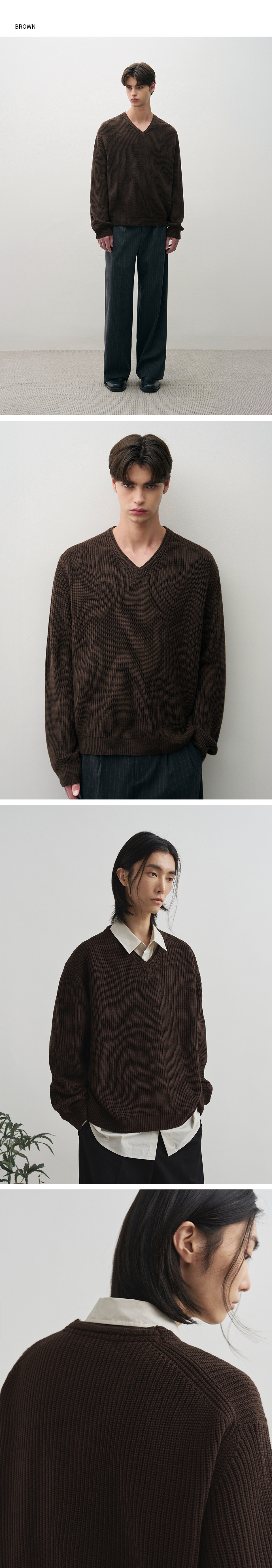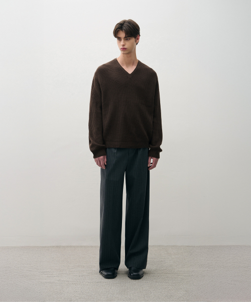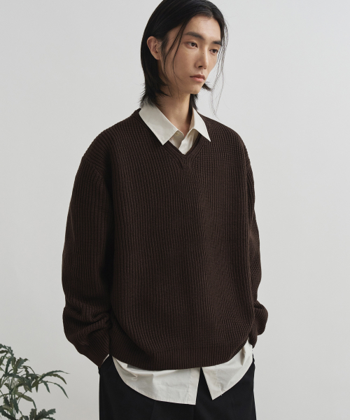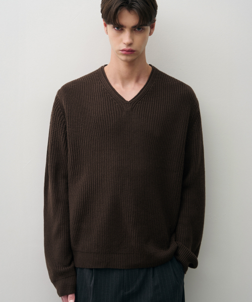 코지드 브이넥 풀오버 니트 [BROWN]