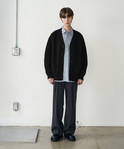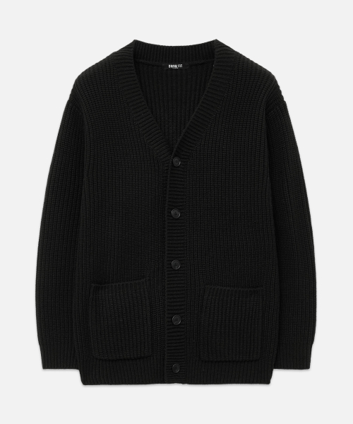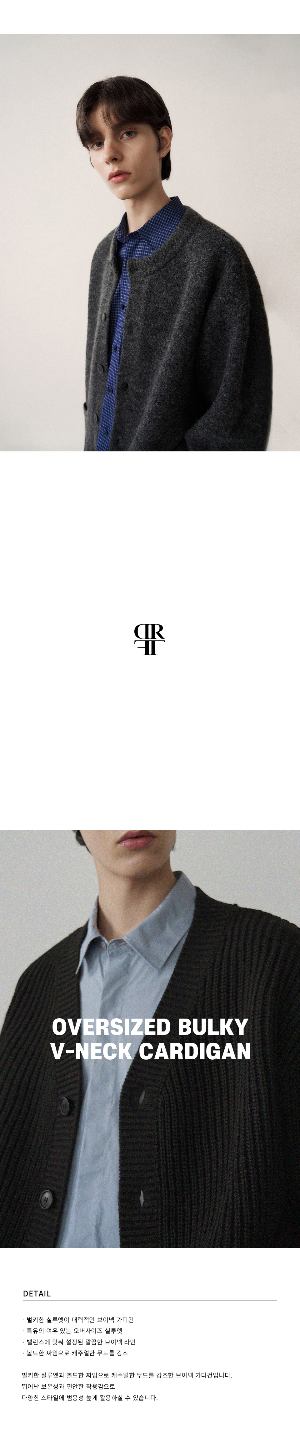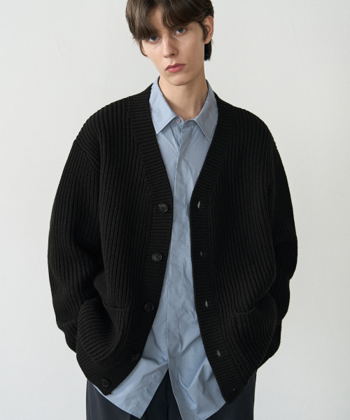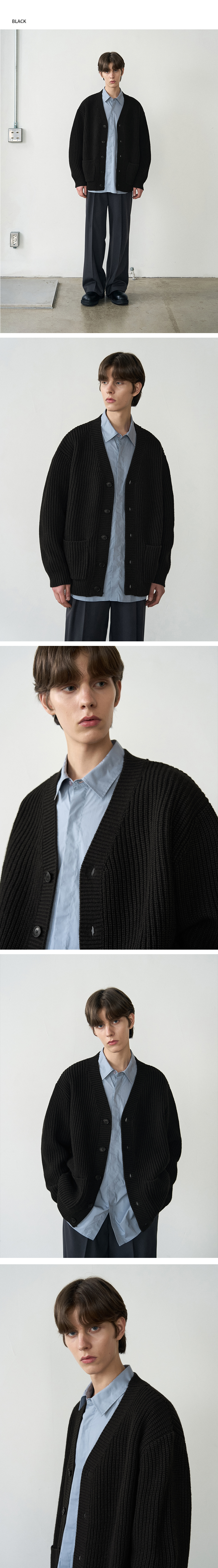 오버사이즈 벌키 브이넥 가디건 [BLACK]