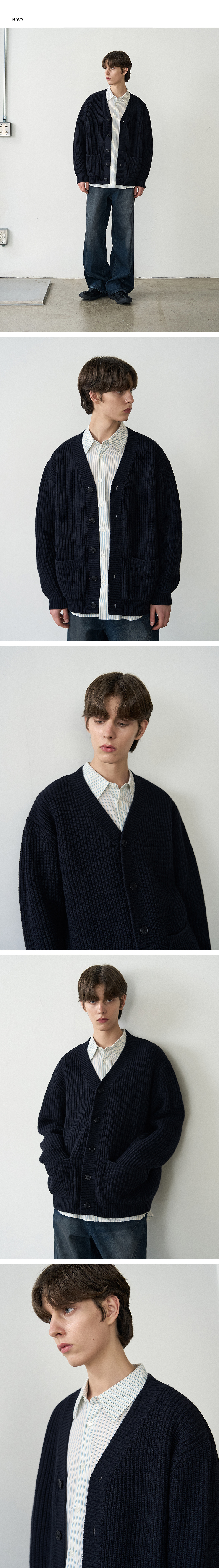 오버사이즈 벌키 브이넥 가디건 [NAVY]