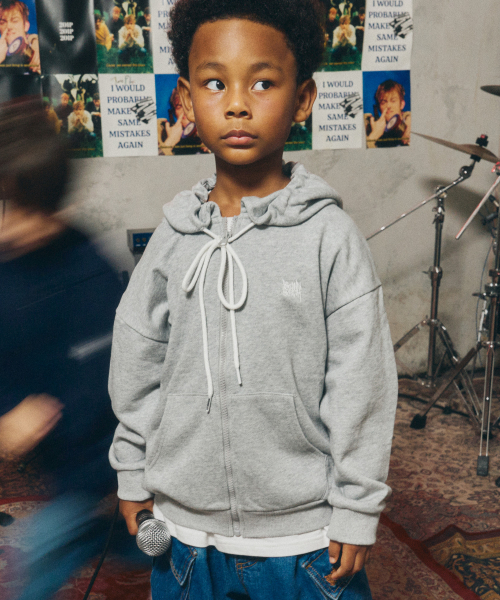 KIDS TAG HOOD ZIP UP - MELANGE GREY