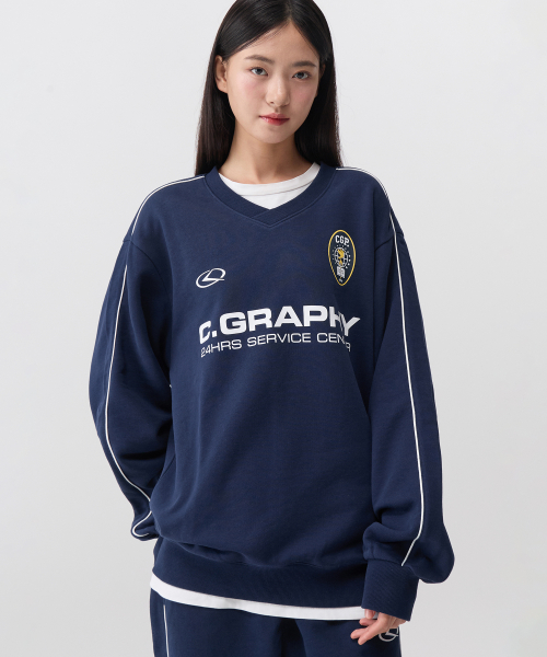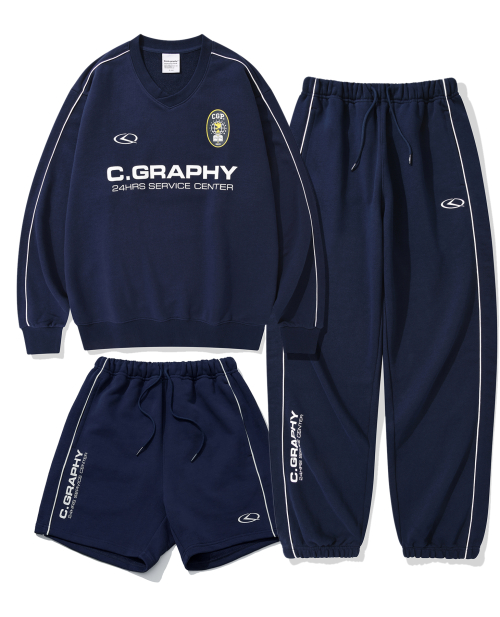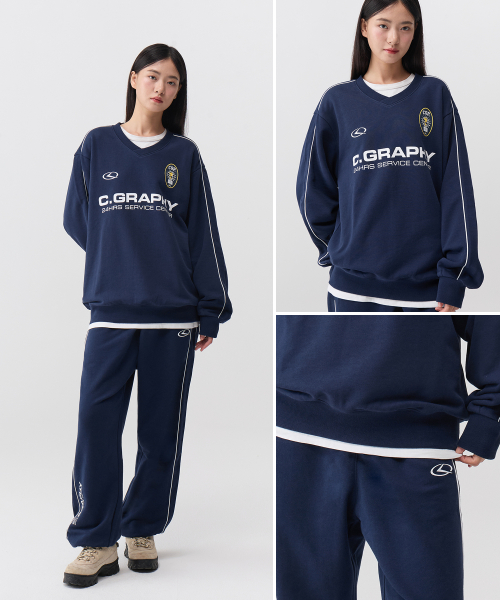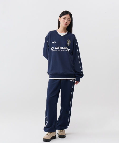 [SET] 24H 트랙 브이넥 맨투맨 셋업_네이비