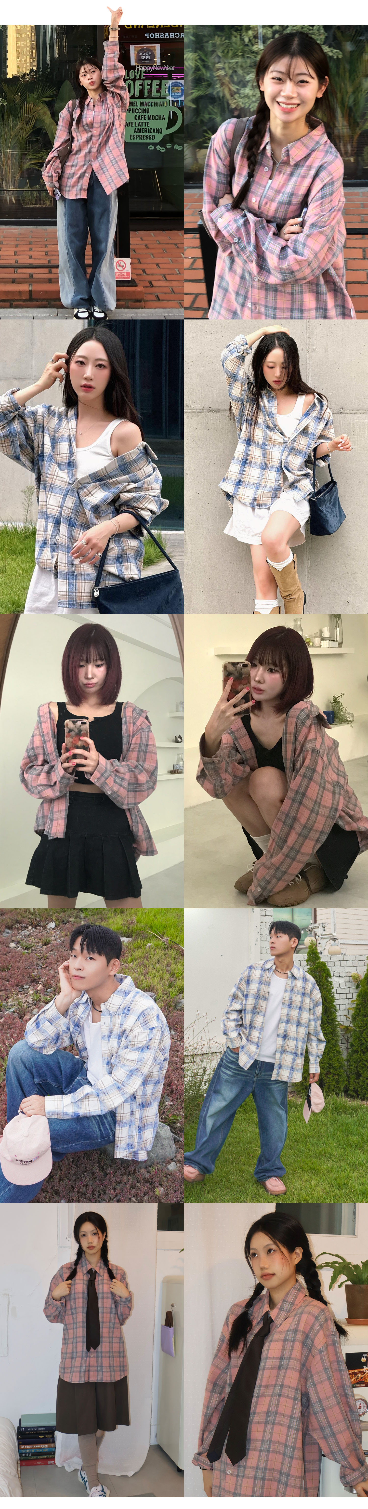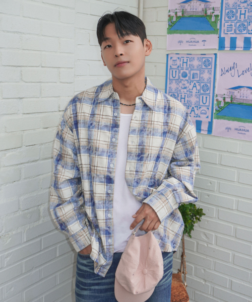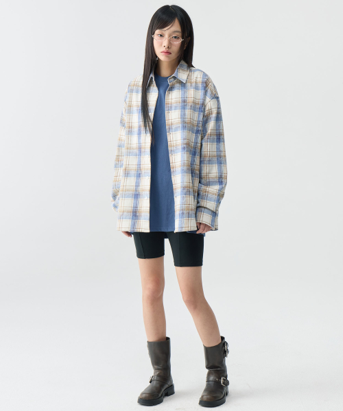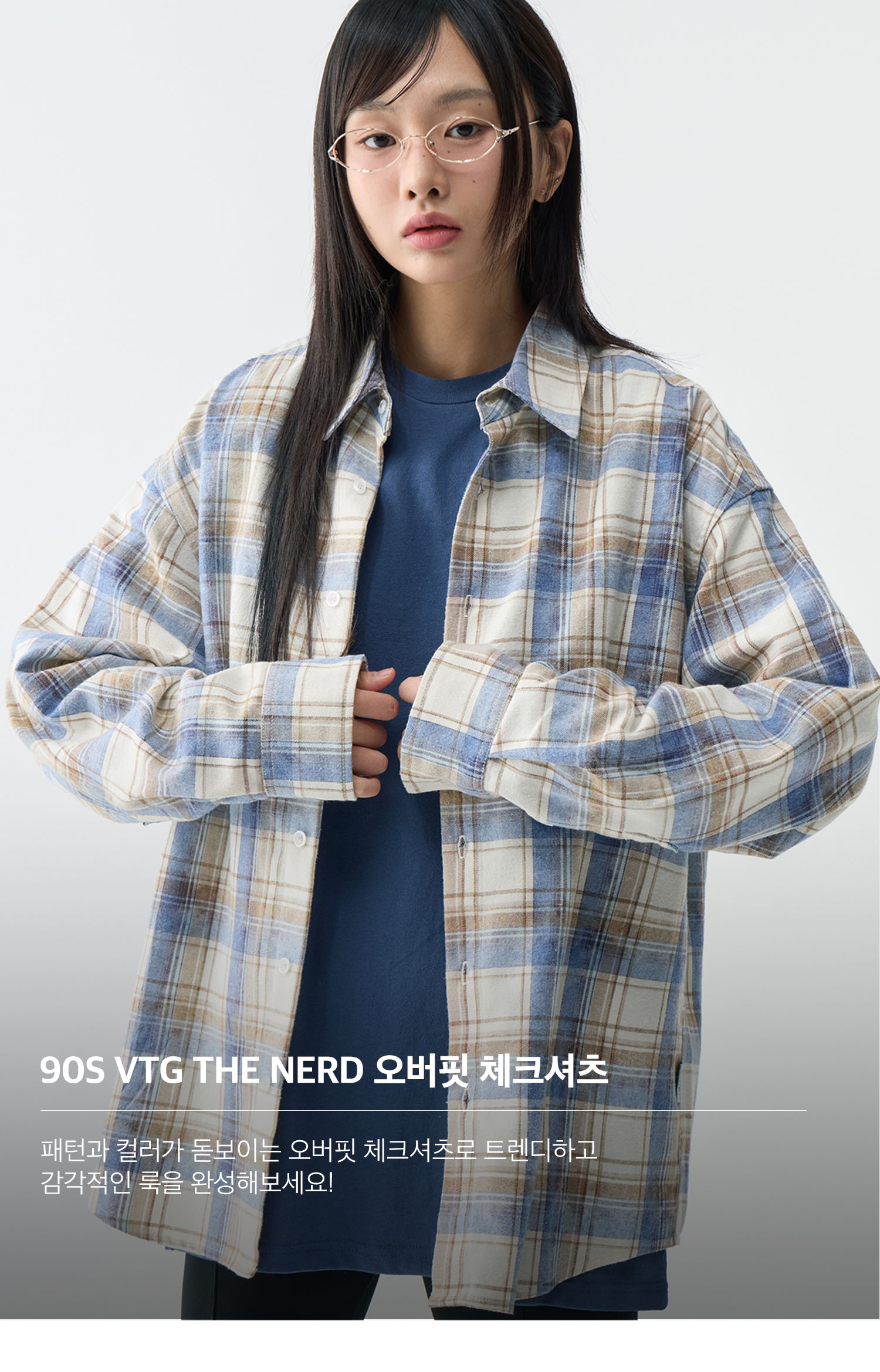 90S VTG THE NERD 오버핏 체크셔츠_블루