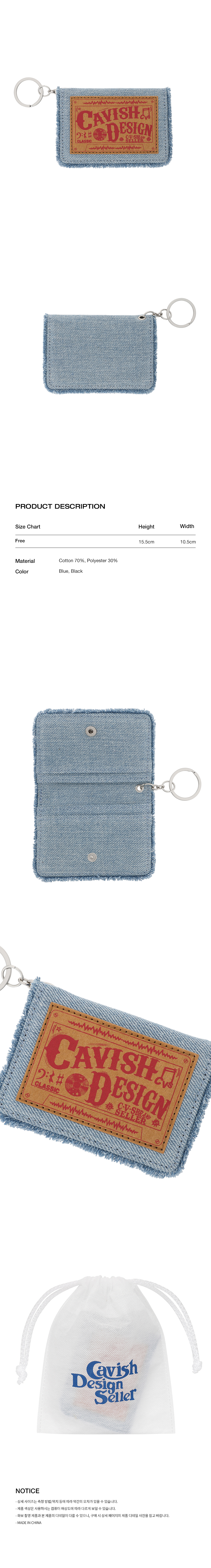 CAVISH X LELBO BROWN CHECK APPLIQUE DENIM WALLET BLUE(CV2FMUAB99C)