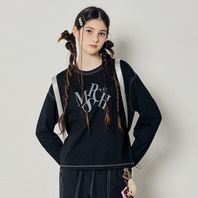 레터링 포인트 스포티 반집업 맨투맨 티셔츠