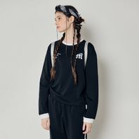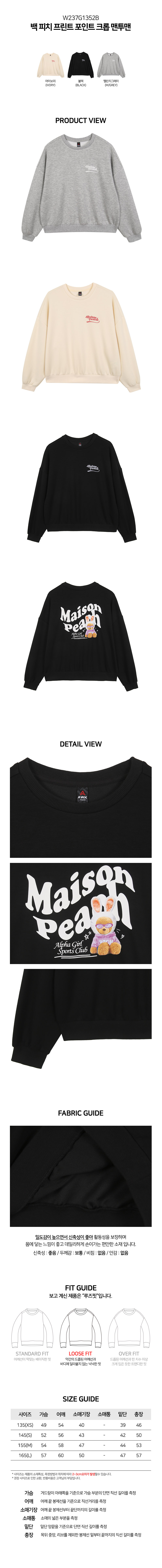 백 피치 프린트 포인트 크롭 맨투맨