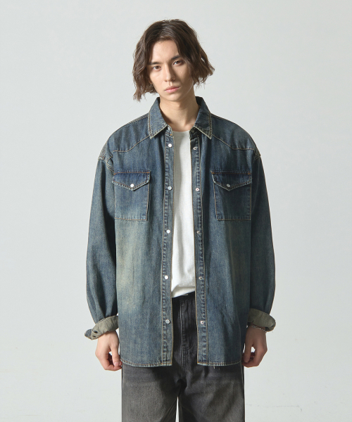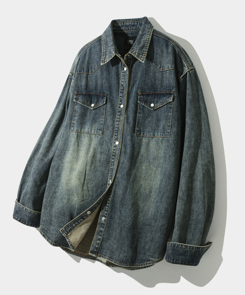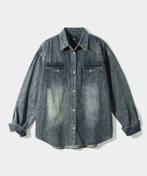 바이오 웨스턴 데님 셔츠_더스트 인디고