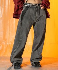 XP251 멀티 포켓 데미지 빅 와이드 데님 팬츠 (GRAY)