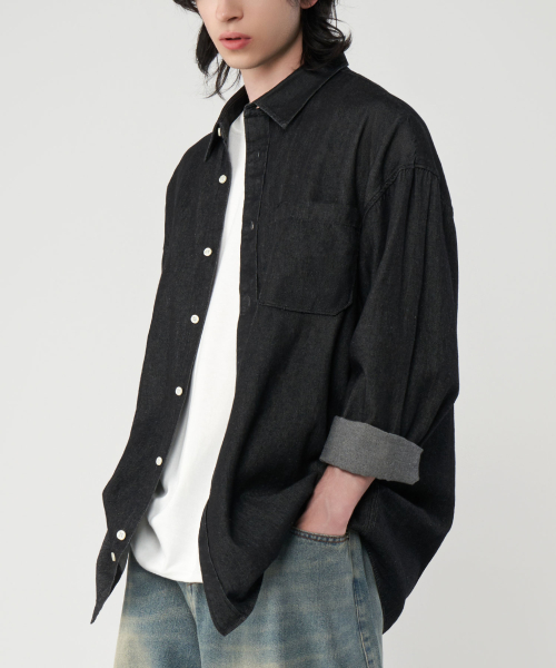 시티보이 빅오버핏 워시드 데님 셔츠 4Color