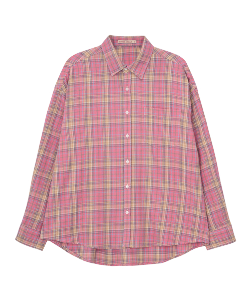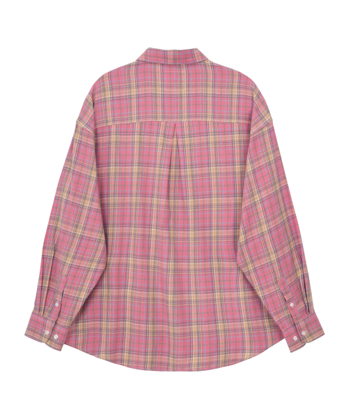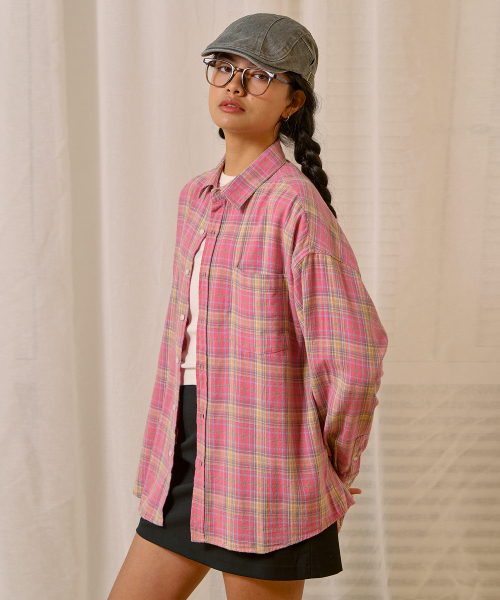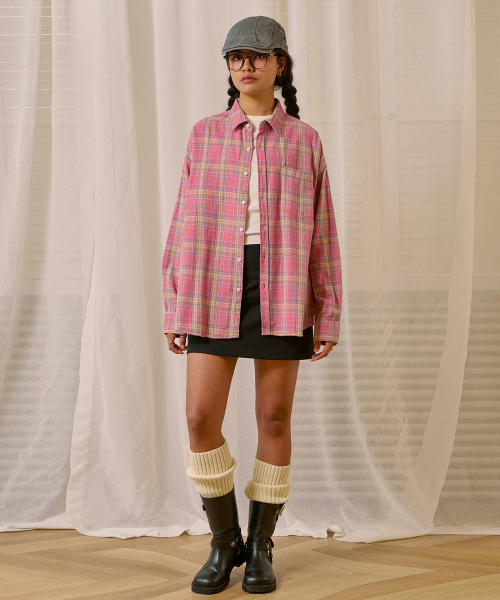 팝 오버핏 체크 셔츠-핑크