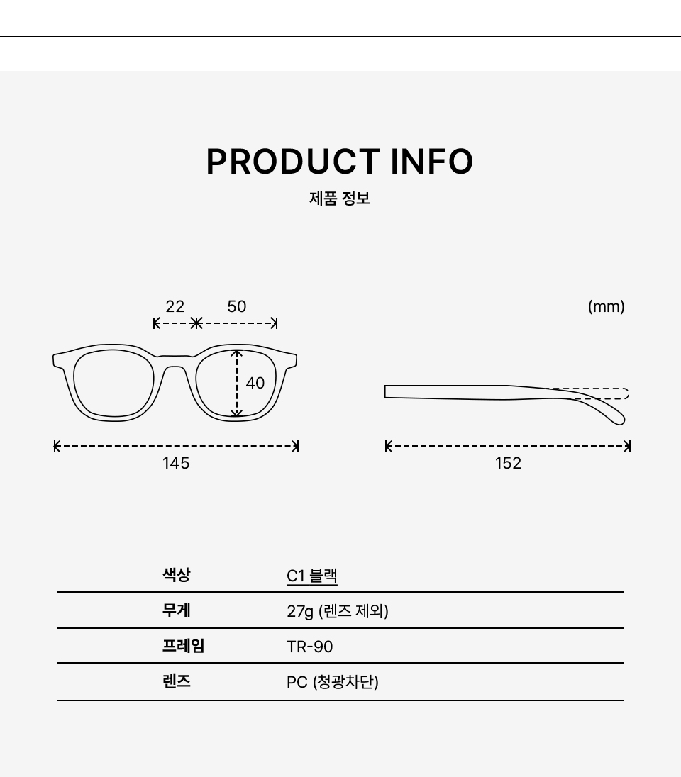 BETHEL (BLACK) 7size 블루라이트 차단 안경