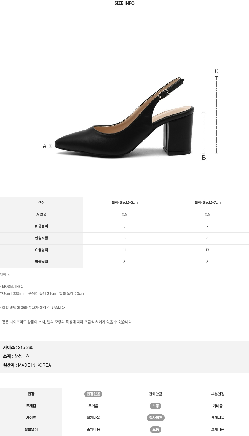 블록 힐 디자인의 5 / 7cm 2가지 굽 높이 구성으로 취향에 맞게 선택이 가능합니다.