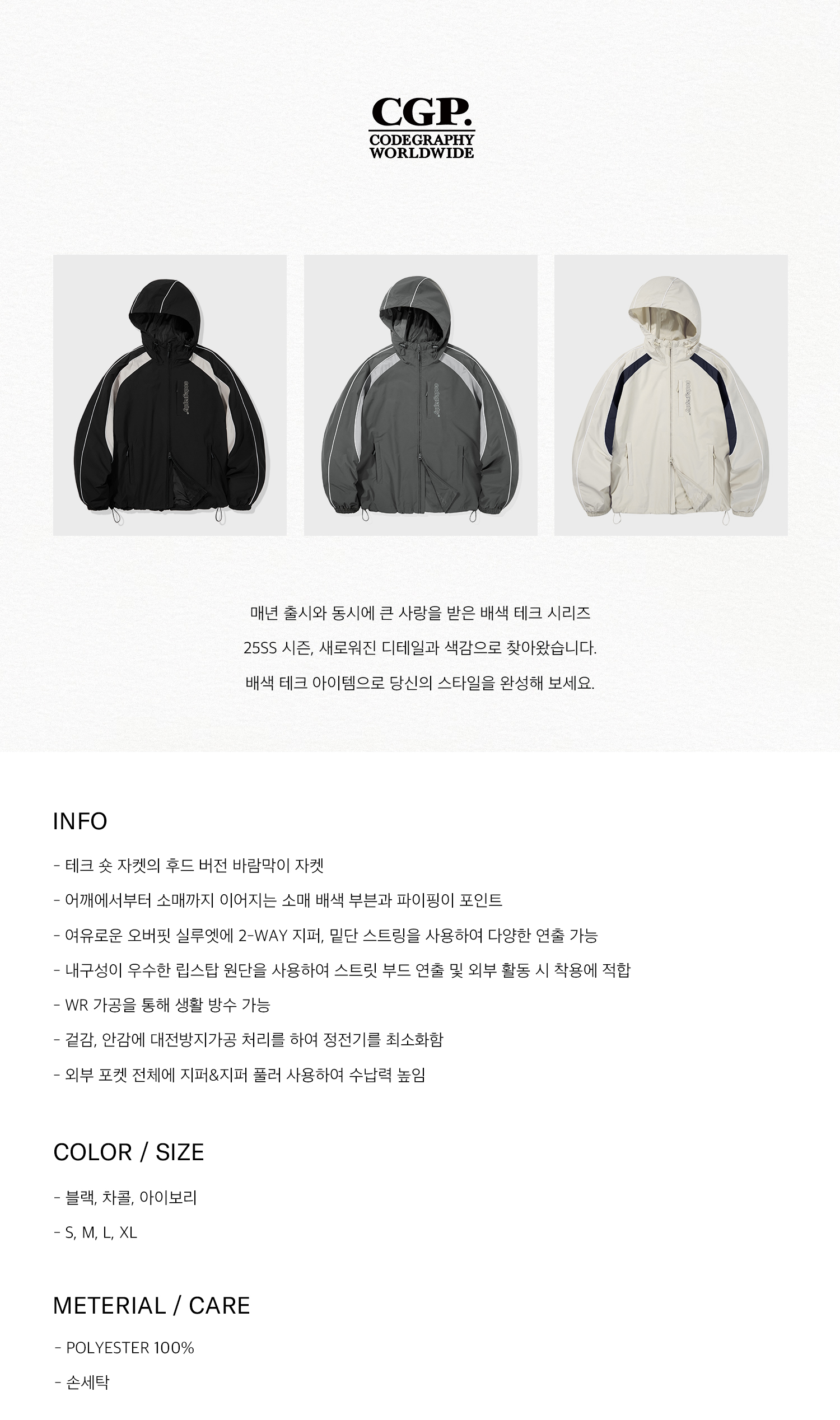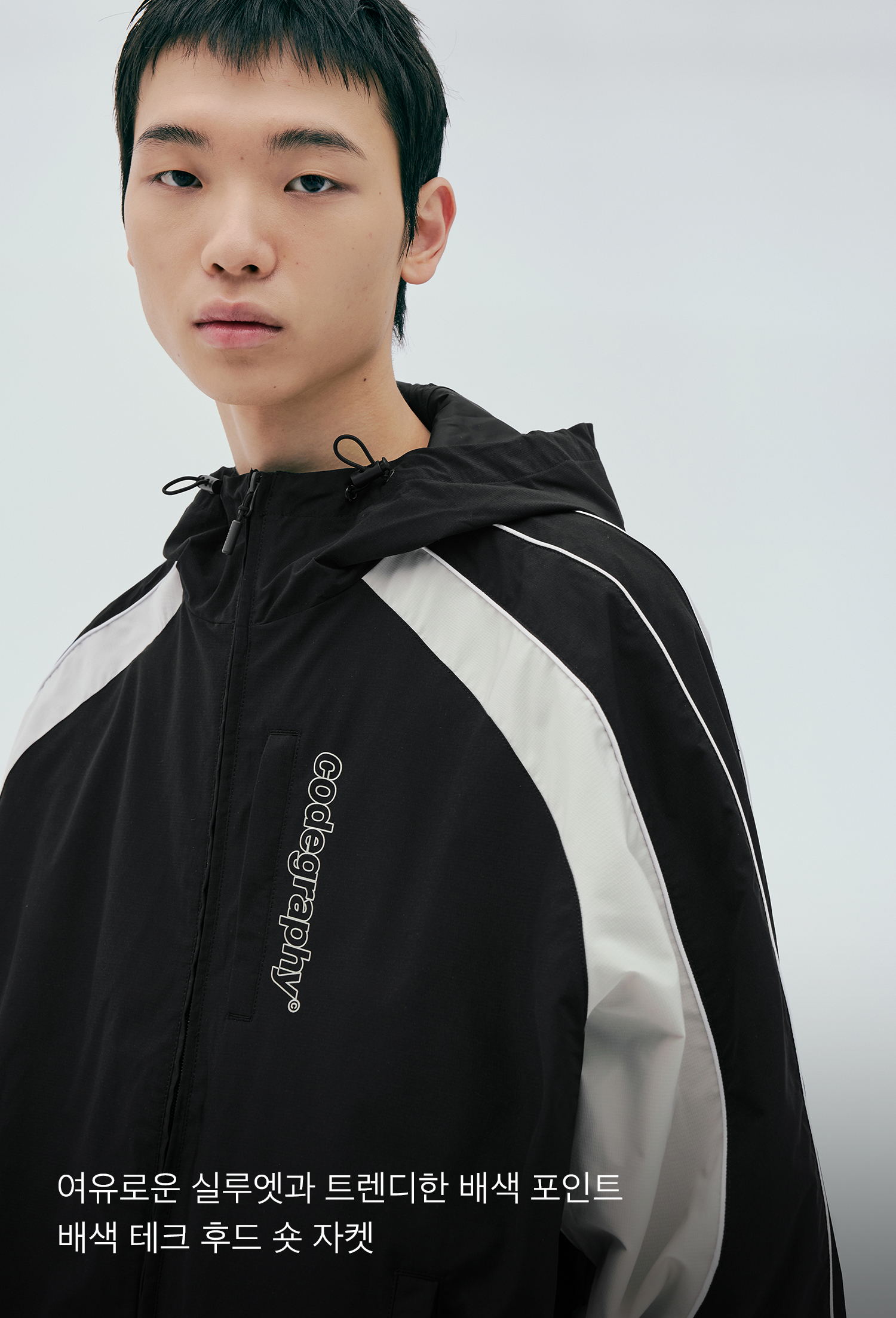 배색 테크 후디 숏 자켓_차콜