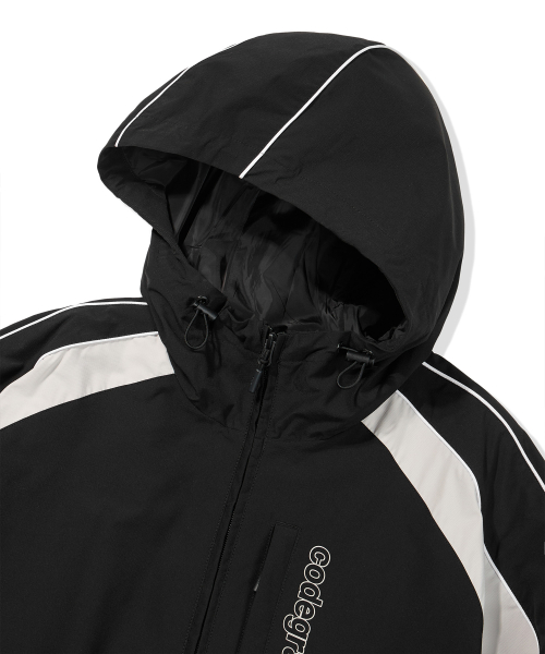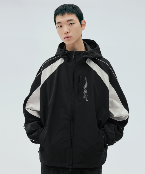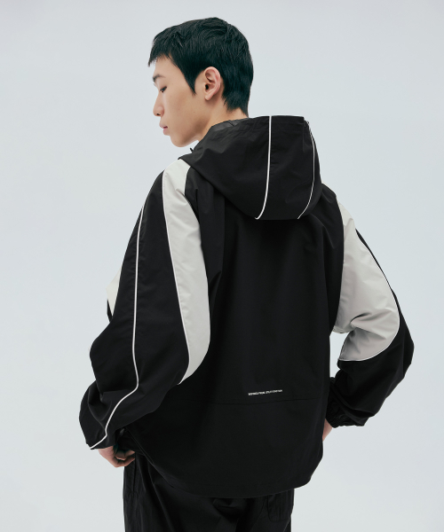 배색 테크 후디 숏 자켓_블랙