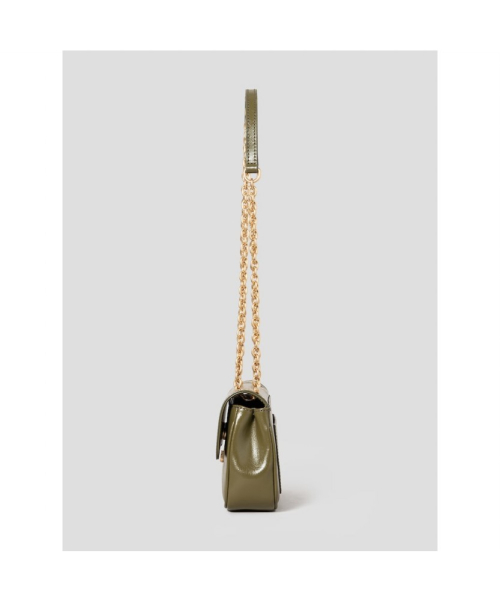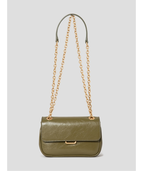 스퀘어 실루엣에 덮개를 더한 미니 숄더백입니다. 은은한 광택과 부드러운 촉감이 매력적인 가죽 소재로 제작되어 간결하면서 세련된 무드를 선사합니다. 체인 스트랩으로 여성스러움을 더했으며, 데일리룩부터 오피스룩까지 다양하게 연출할 수 있는 아이템입니다. 스마트폰 수납이 가능한 사이즈로 필수 아이템이 넉넉히 들어가는 크로스백입니다.