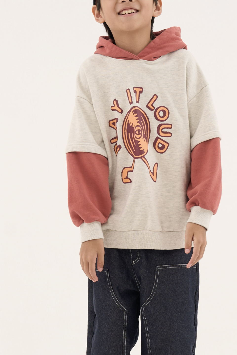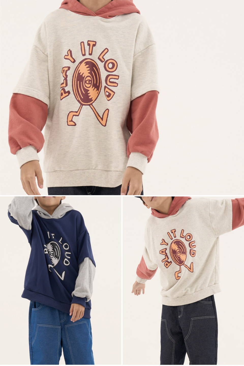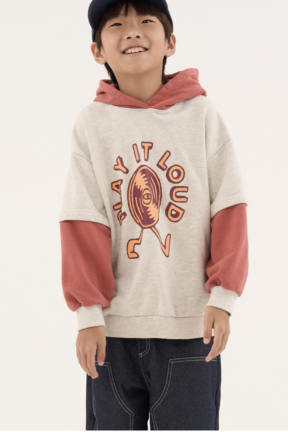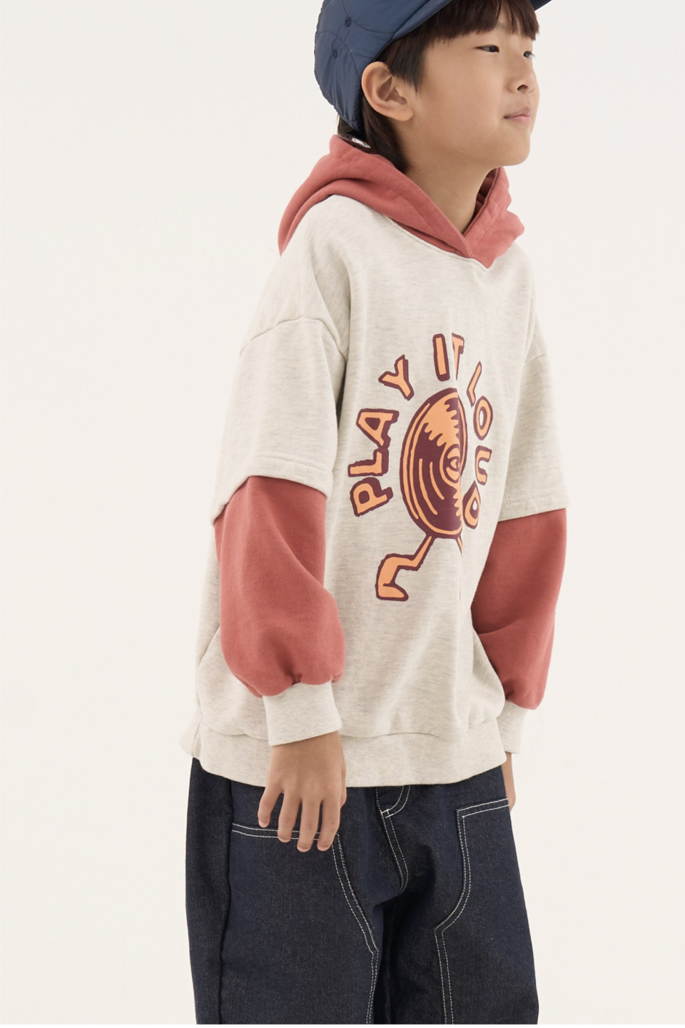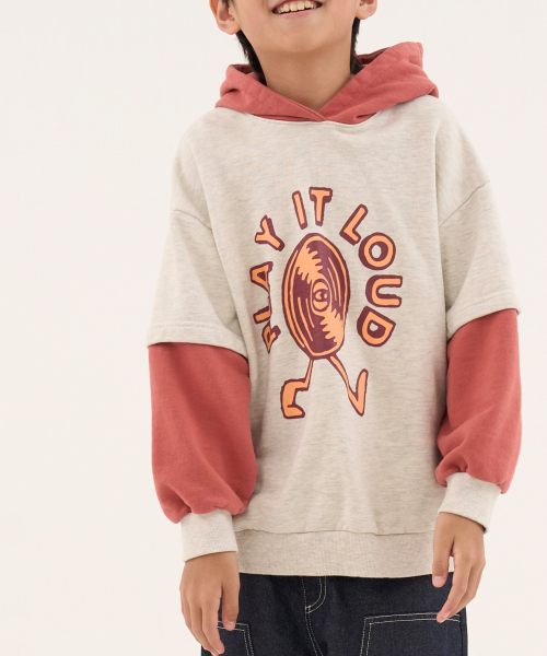 라우드 오버사이즈 레이어드 배색 후디 오트밀