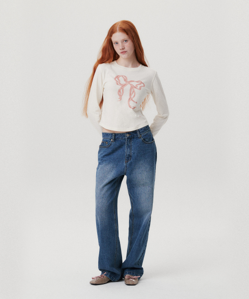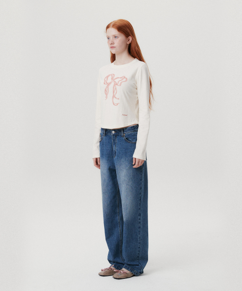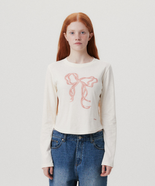 RIBBON GRAPHIC LS TEE CREAM