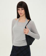 우먼즈 울 텐셀 홀터 레이어드 긴소매 티셔츠 [라이트 그레이]