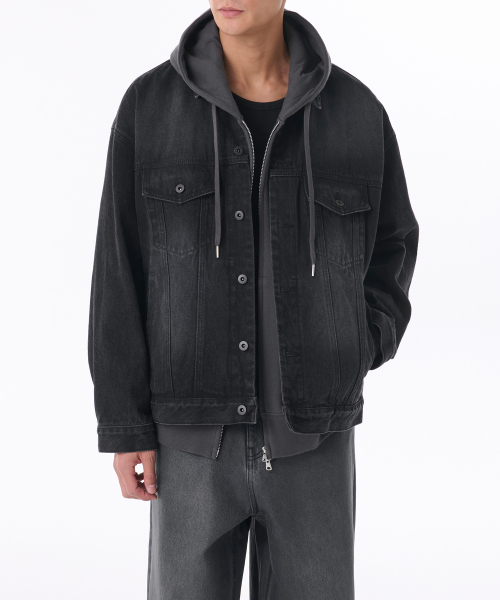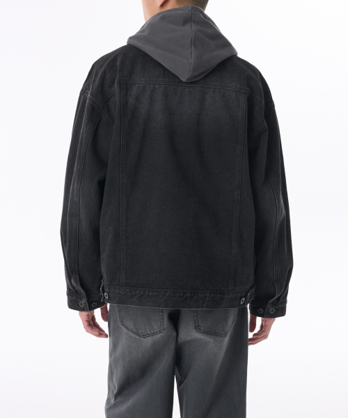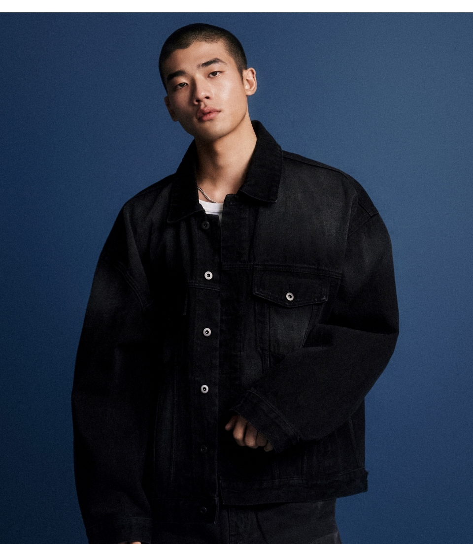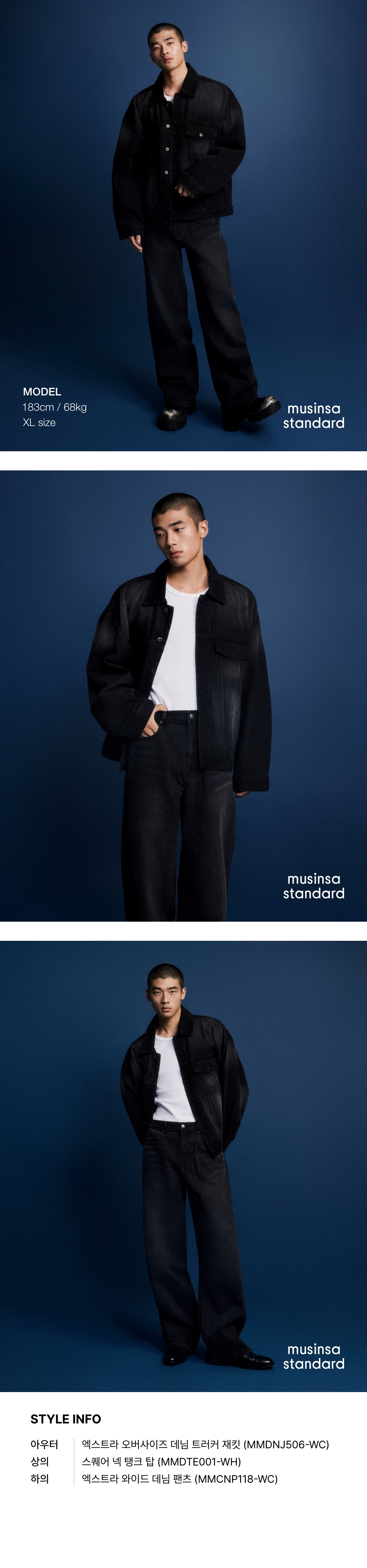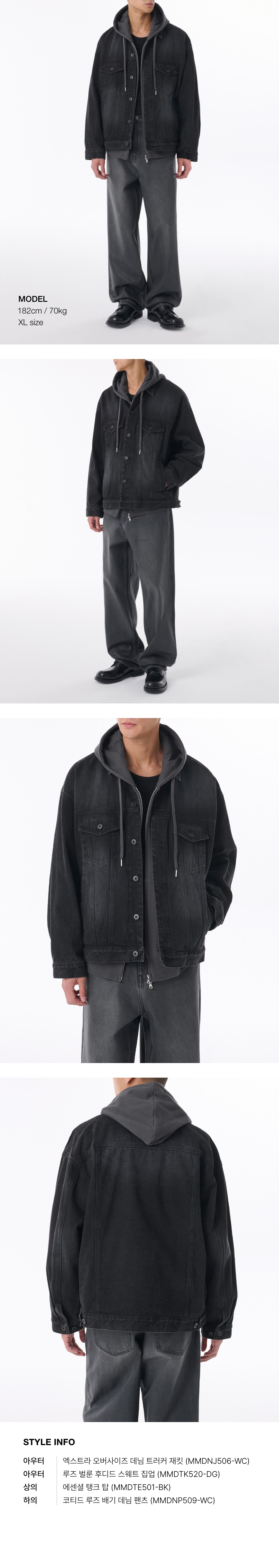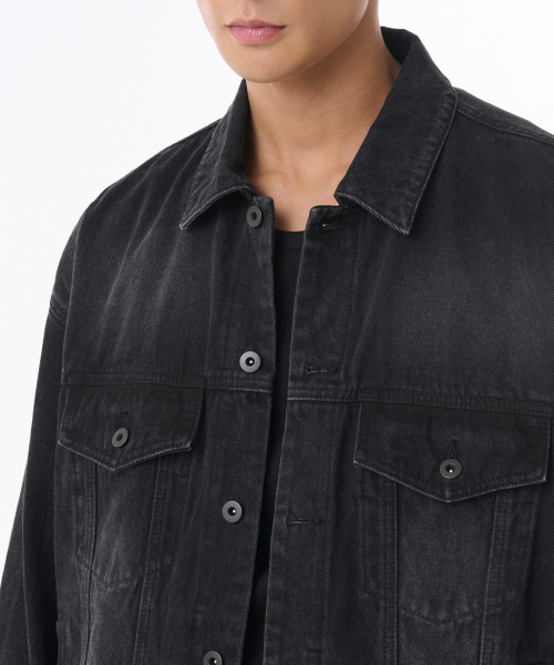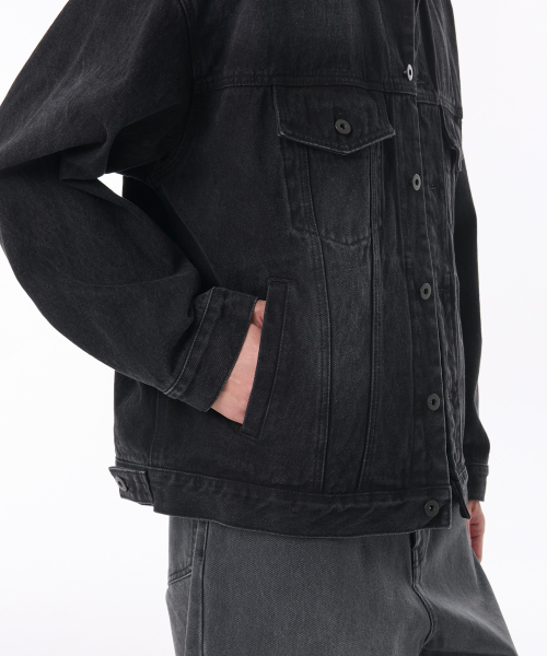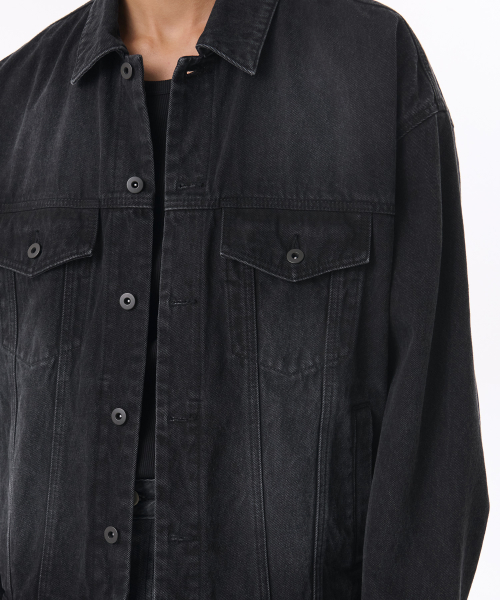 엑스트라 오버사이즈 데님 트러커 재킷 [워시드 블랙]