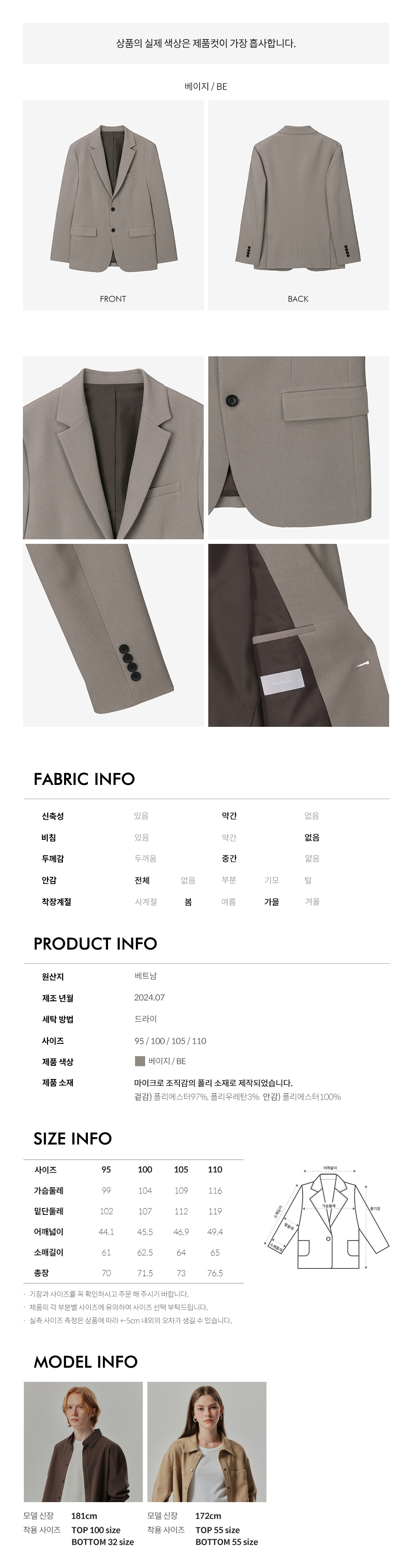 해당 상품은 셋업으로(자켓+팬츠)발송 되며,단품 가격 보다 합리적인 가격으로 만나보실 수 있습니다.