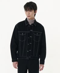 콘트라스트 스티치 릴렉스드 데님 트러커 재킷 [블랙]