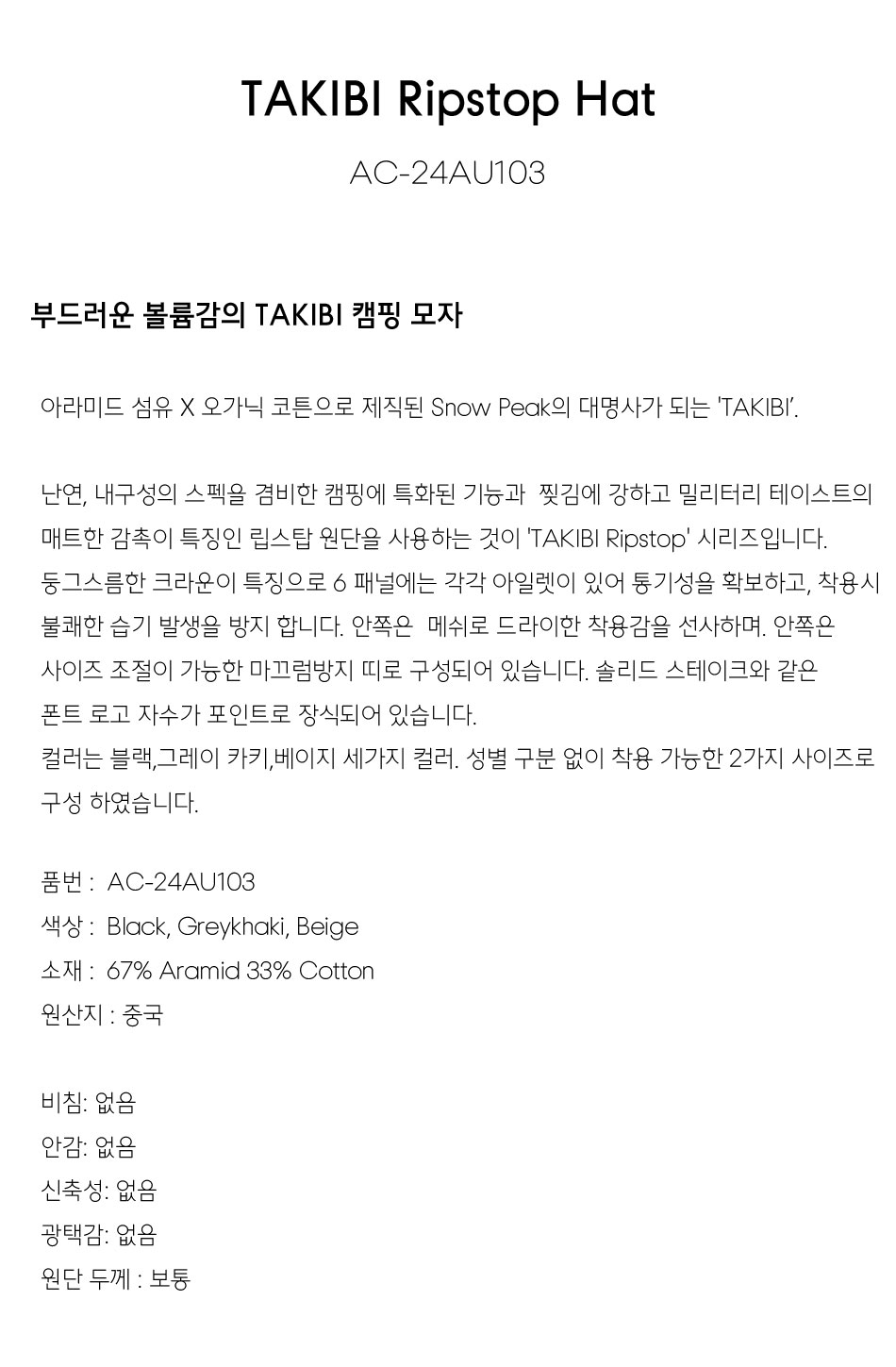 TAKIBI 립스탑 햇 - 베이지 / AC-24AU104BG