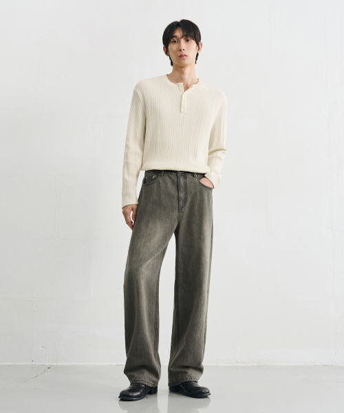 유주얼 세미 와이드 데님 팬츠 [VINTAGE GREY]