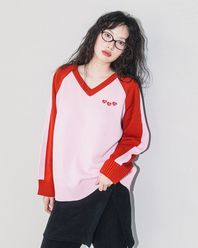 3 HEART ROSE V-NECK KNIT SWEATER(PINK)