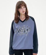 NOI1712 브이넥 배색 파이핑 롱슬리브 (스카이블루)