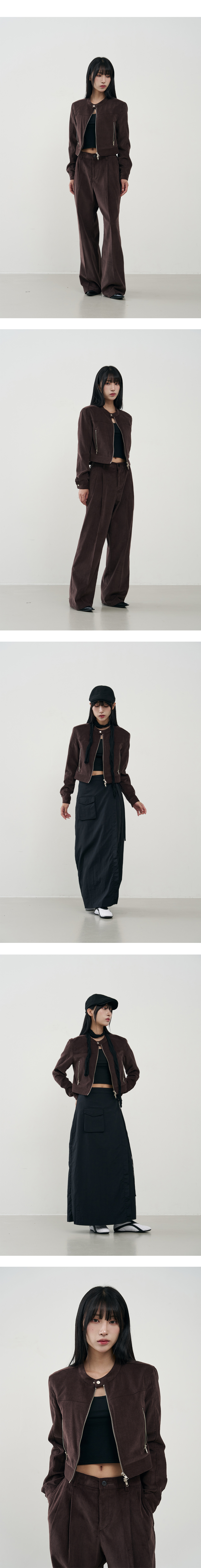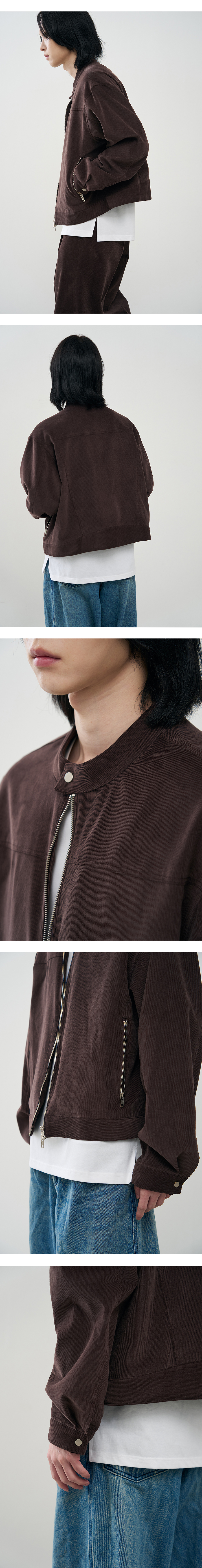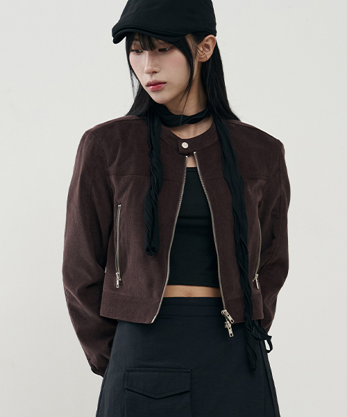 버티컬 바이커 크롭 코듀로이 자켓 [BROWN]