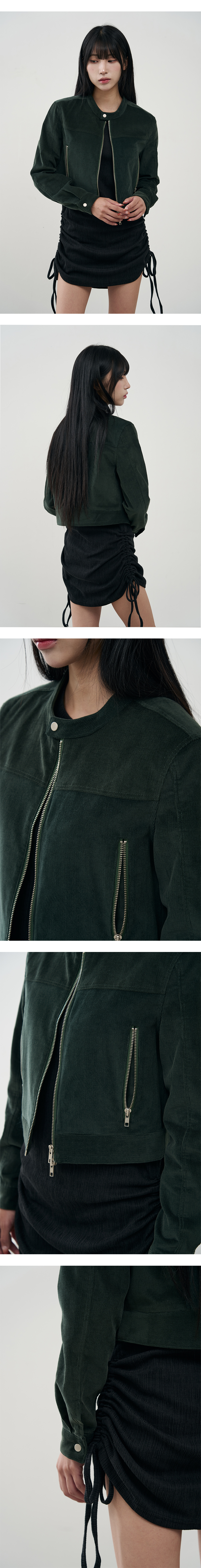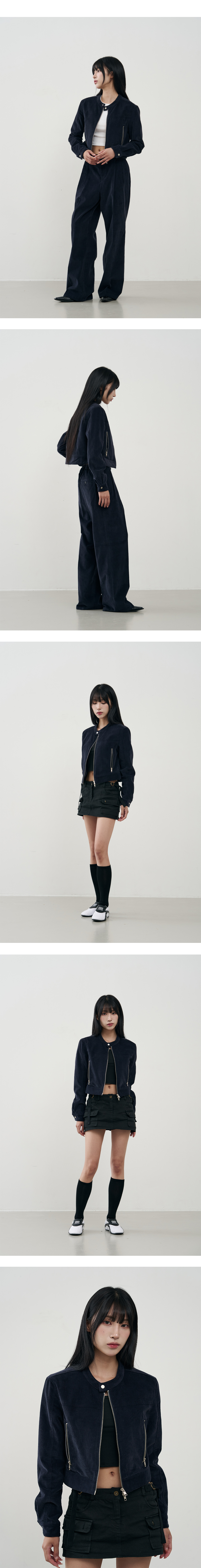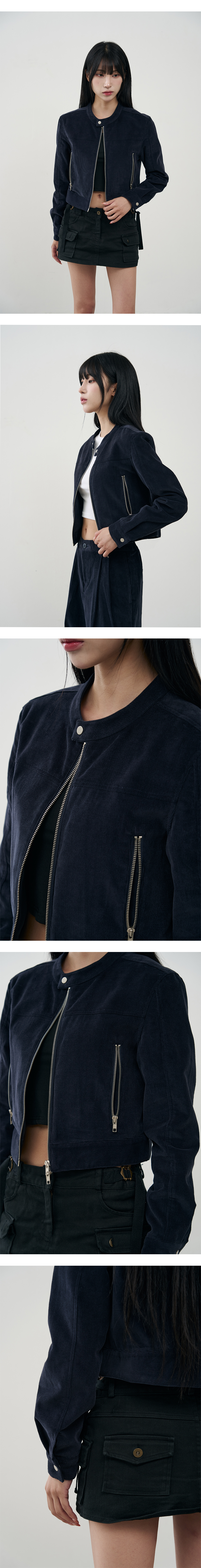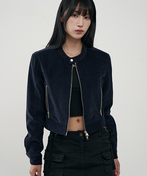 버티컬 바이커 크롭 코듀로이 자켓 [NAVY]