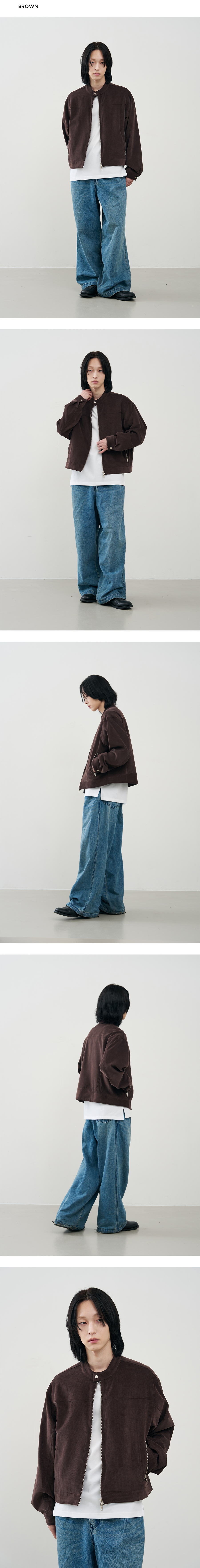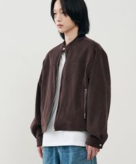 미니멀 워시드 크롬 하프 절개 오버핏 스웨이드 자켓 [브라운]