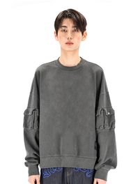 [NONE GRAPHIC]그리드 가먼트 다잉 오버핏 스웻 맨투맨 (스틸그레이)