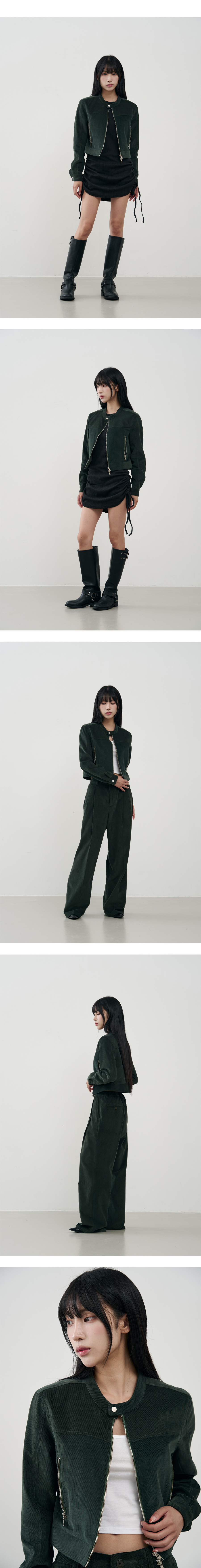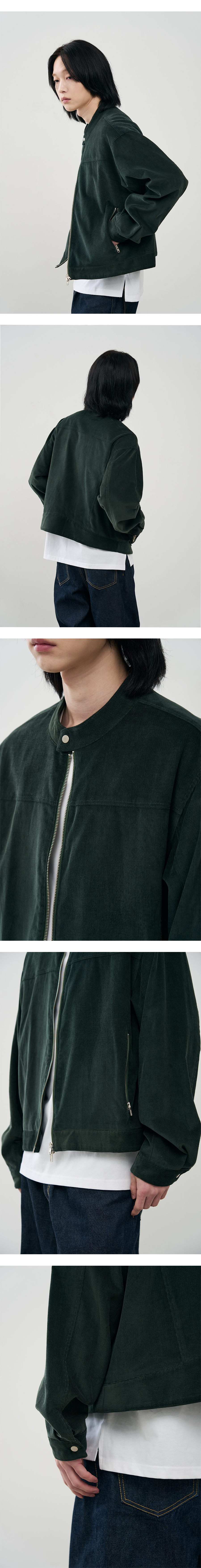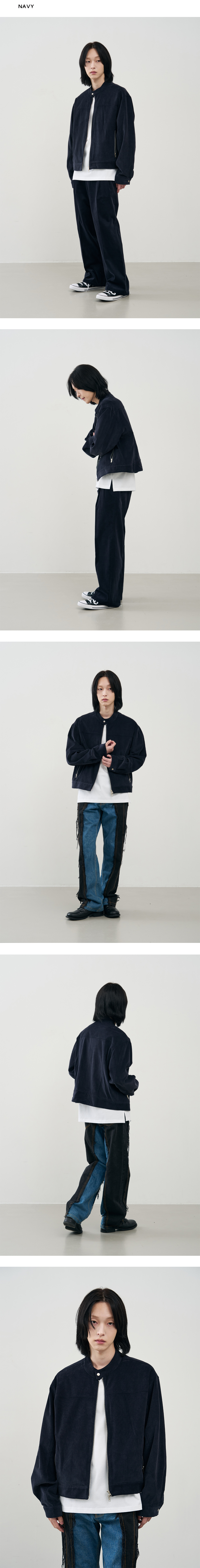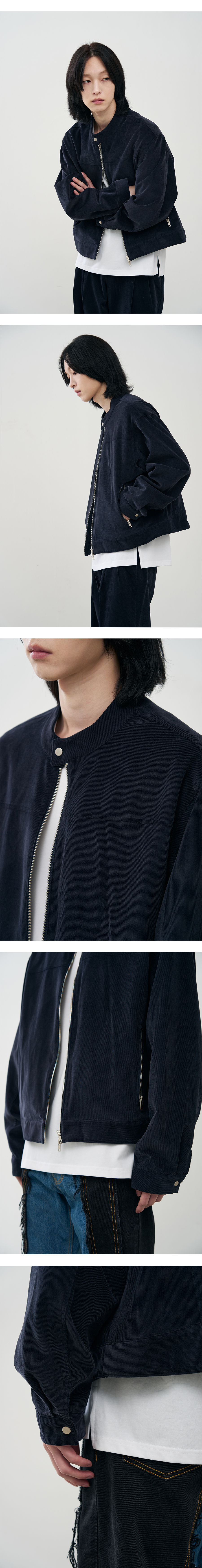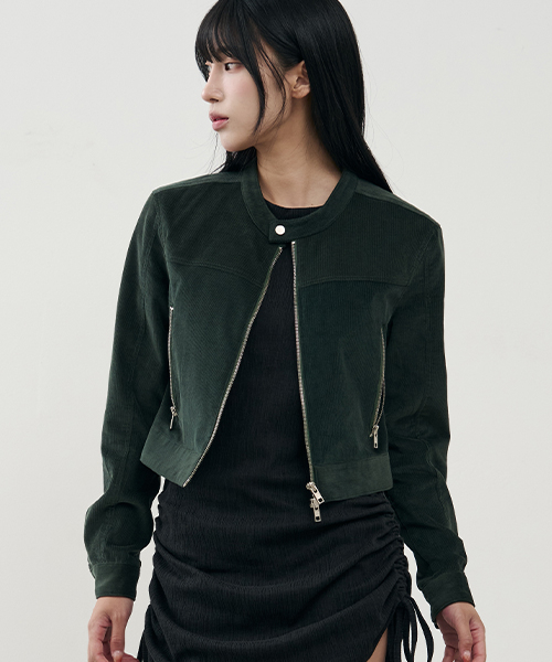 버티컬 바이커 크롭 코듀로이 자켓 [NAVY]