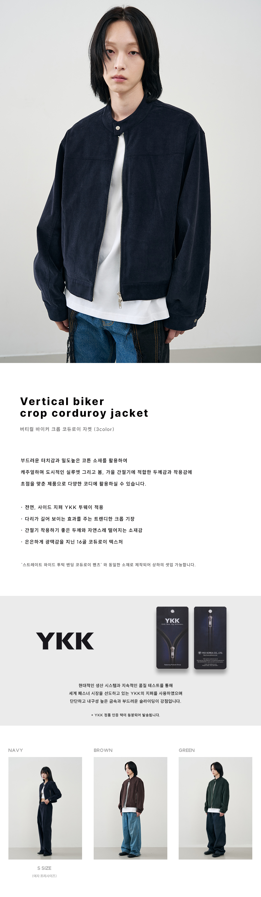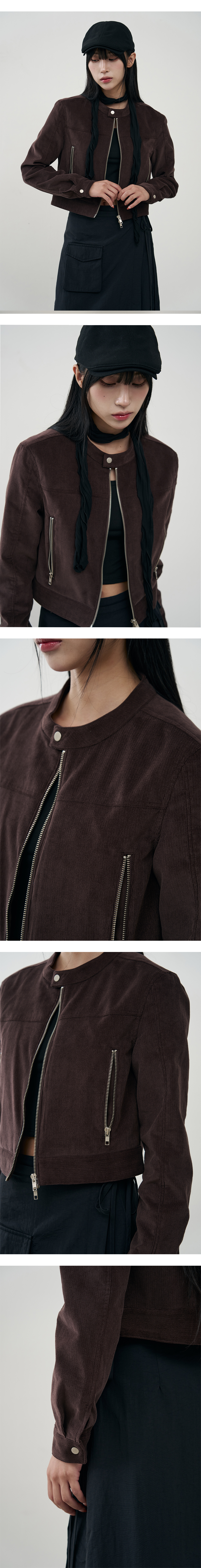 버티컬 바이커 크롭 코듀로이 자켓 [BROWN]