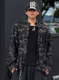 러스트 밴드 카라 셔츠 [카모 블랙]