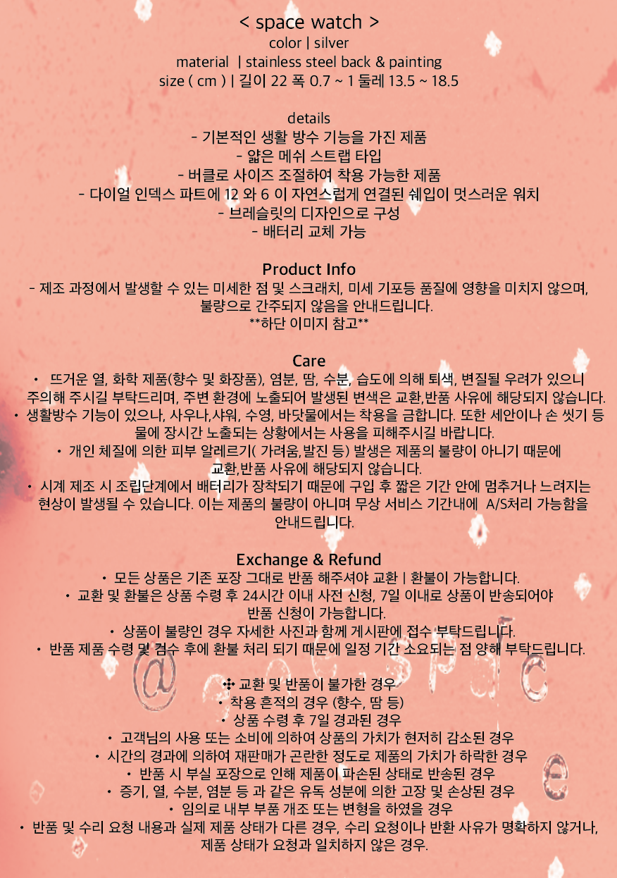 이스페이스(EEESPACE)는 시계라는 아이템을 이용하여 클래식하고 장난스러운 심미적 가치에 중점을 둔 제품들을 선보이는 브랜드입니다. 단순히 기능적으로 생각하는 시계가 아닌 주얼리와 액세서리로 일상 속 자연스러운 멋을 즐겨보세요.