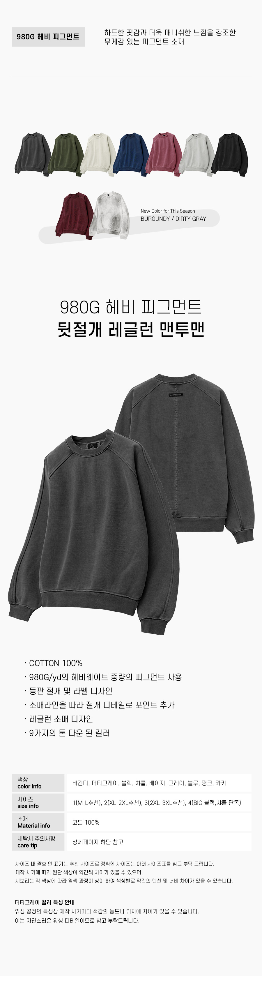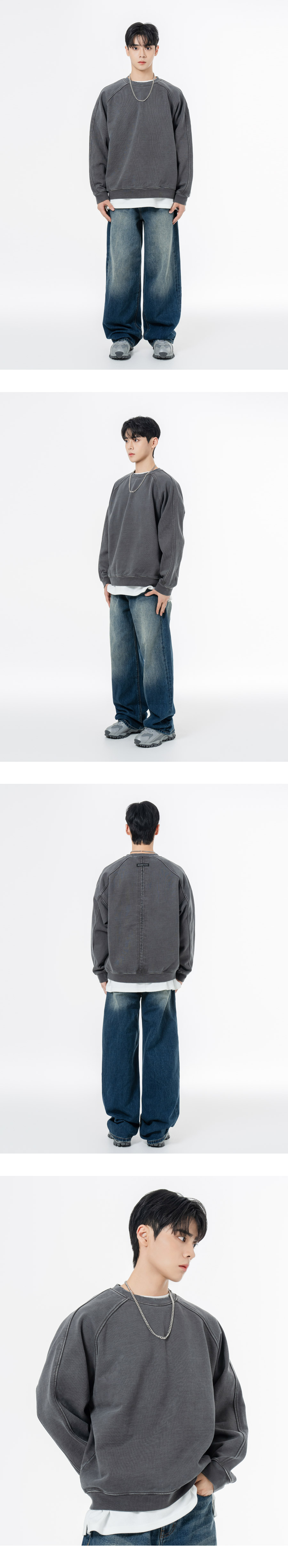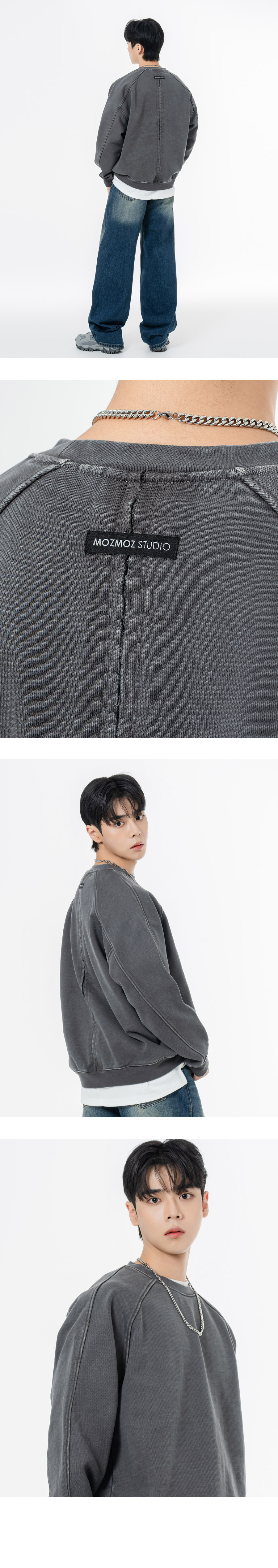 헤비 웨이트 피그먼트 나그랑 뒷절개 오버핏 맨투맨 챠콜