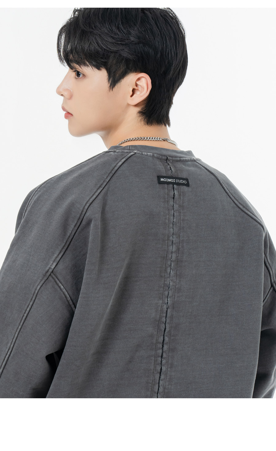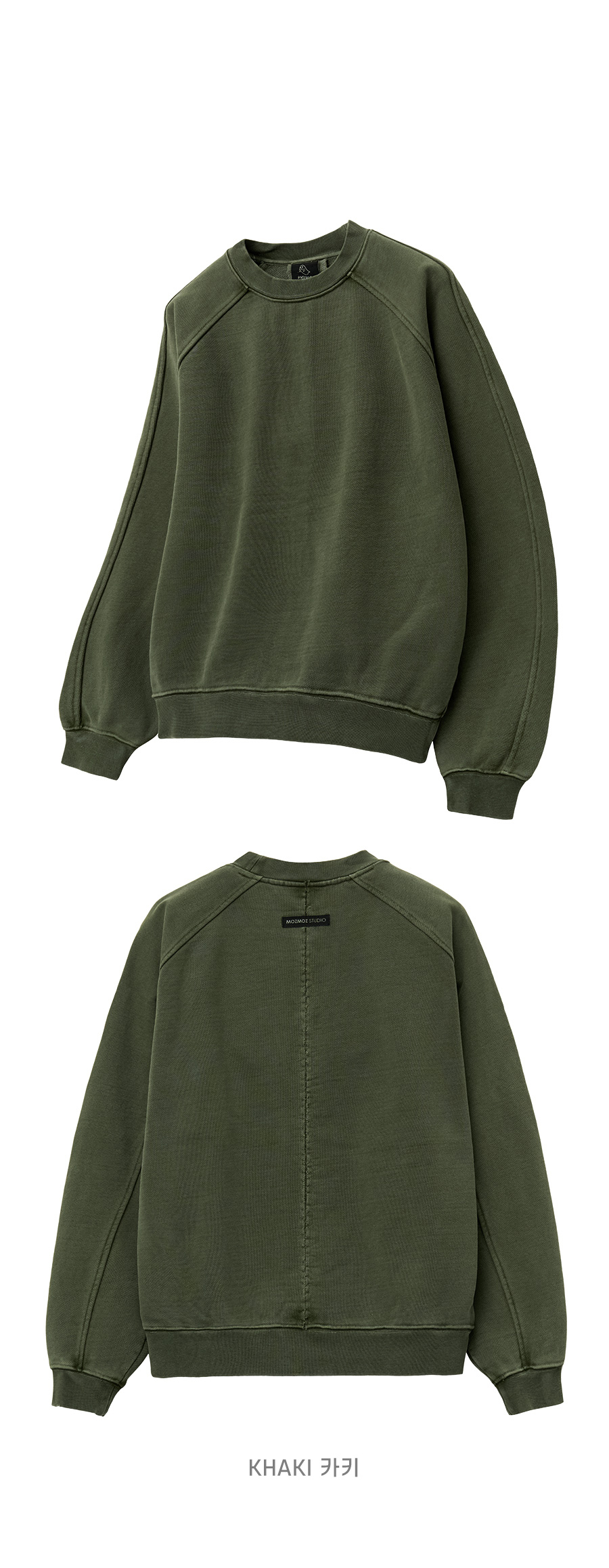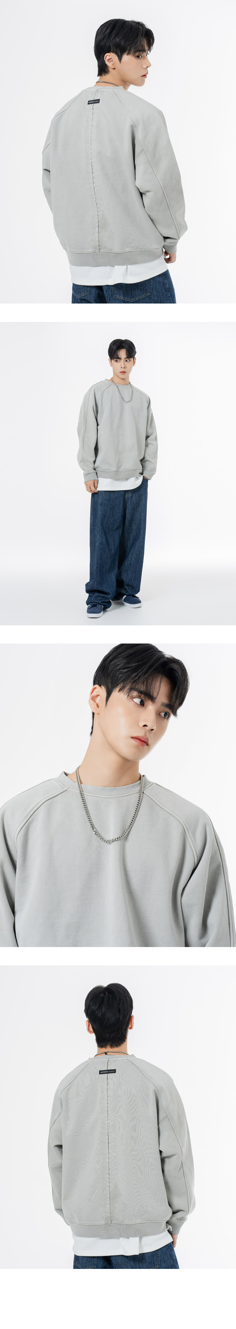 헤비 웨이트 피그먼트 나그랑 뒷절개 오버핏 맨투맨 챠콜