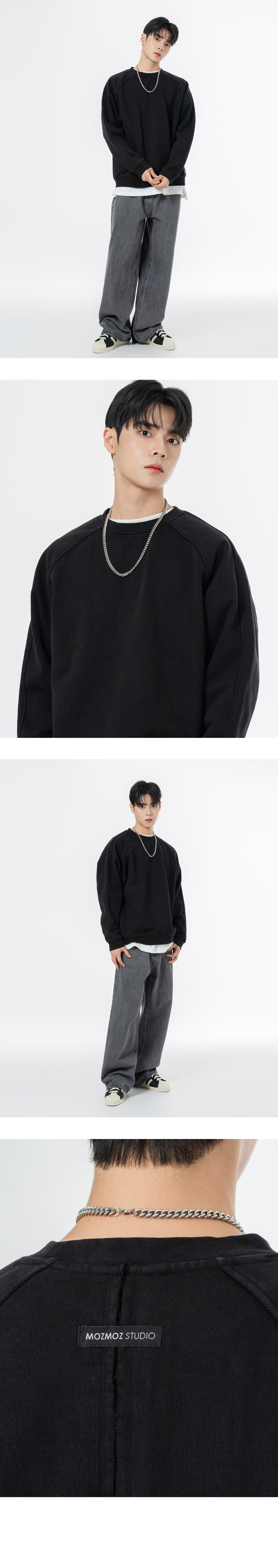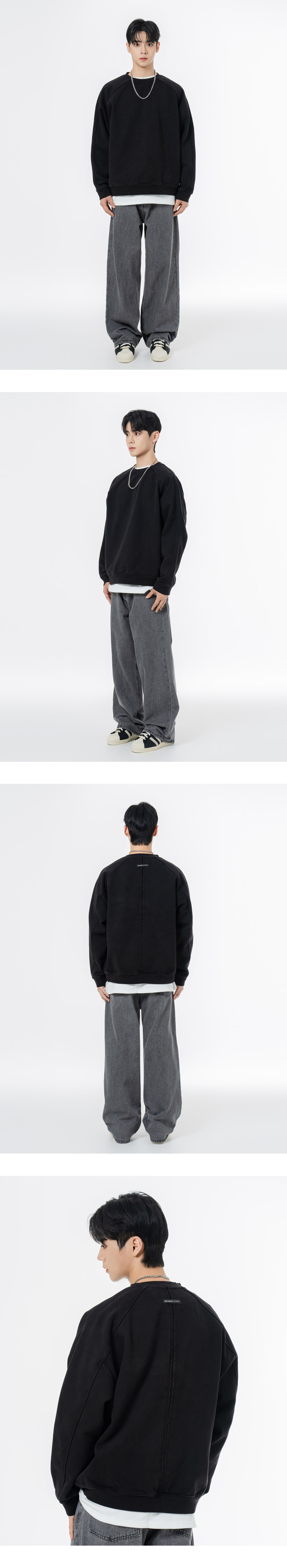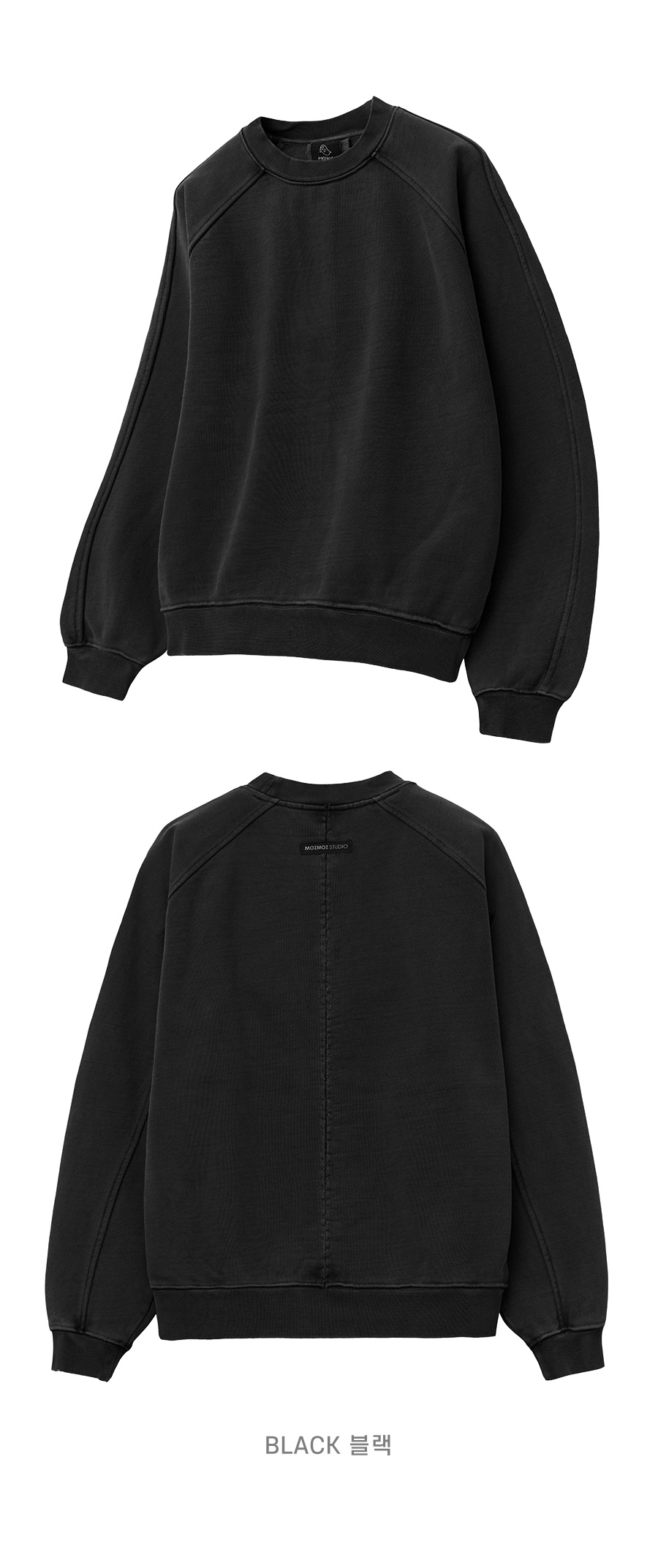 헤비 웨이트 피그먼트 나그랑 뒷절개 오버핏 맨투맨 블랙