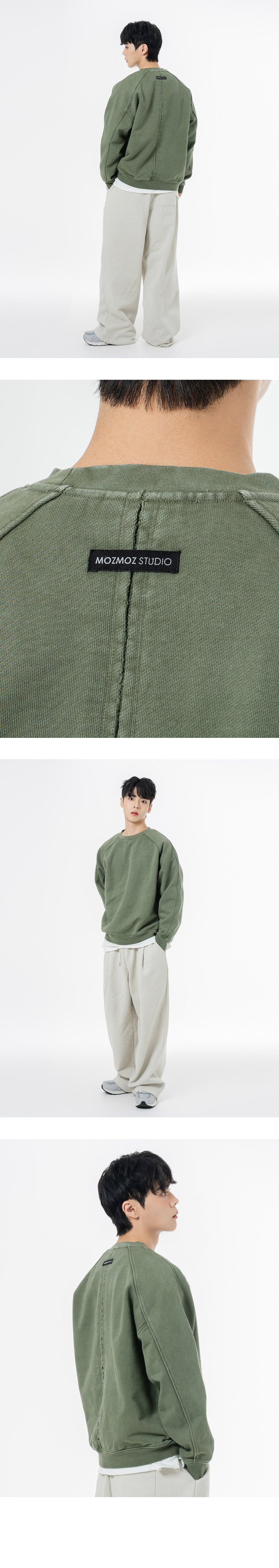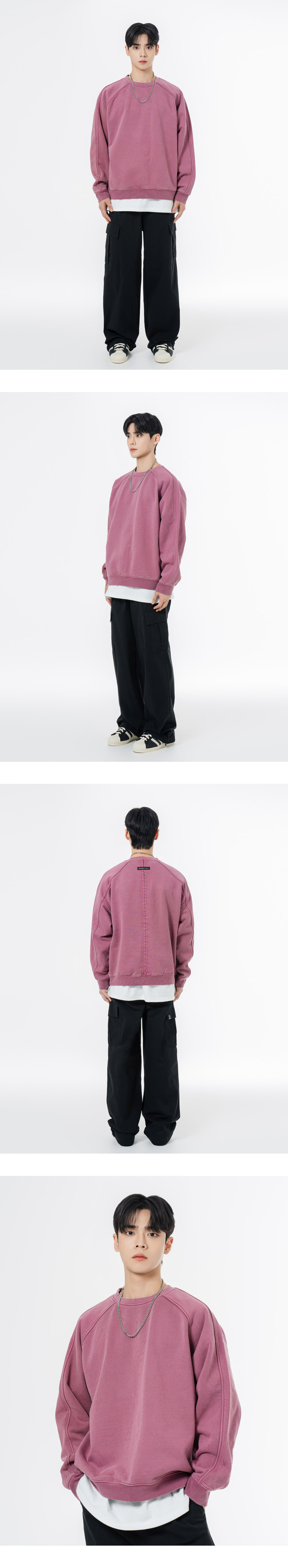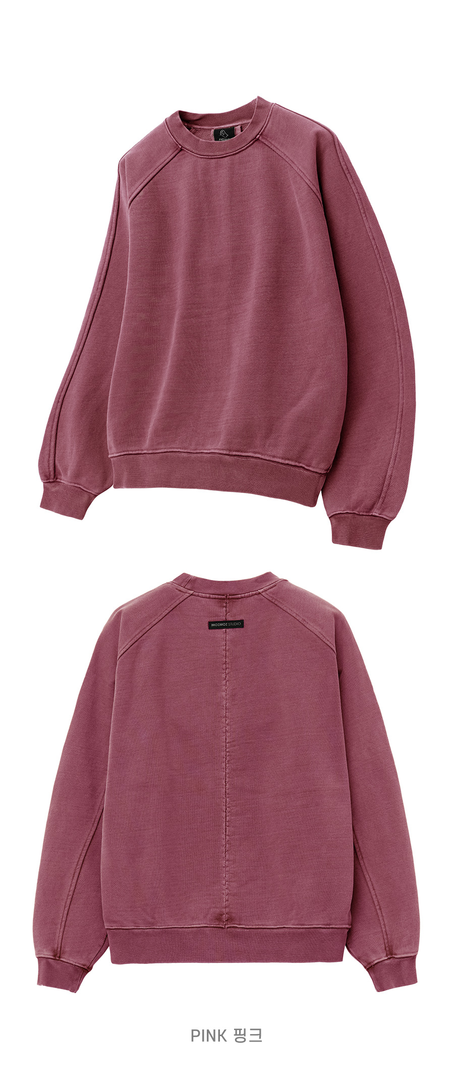 헤비 웨이트 피그먼트 나그랑 뒷절개 오버핏 맨투맨 블랙