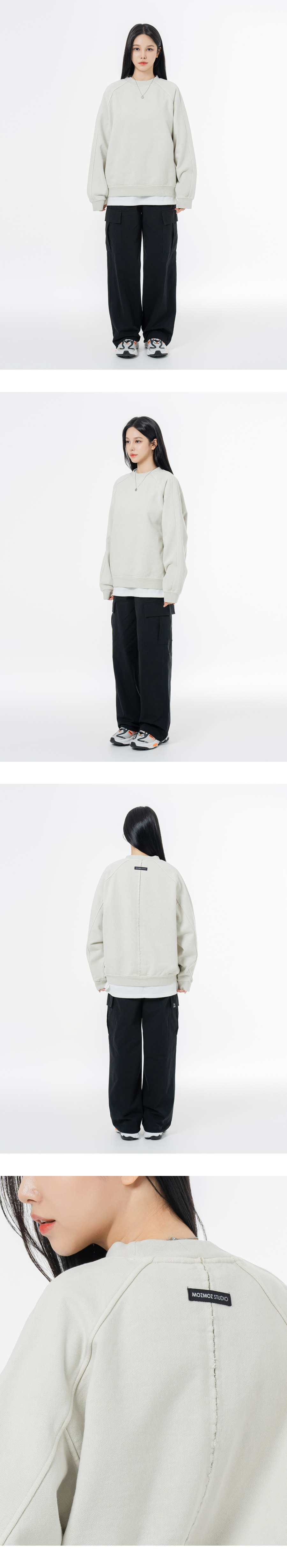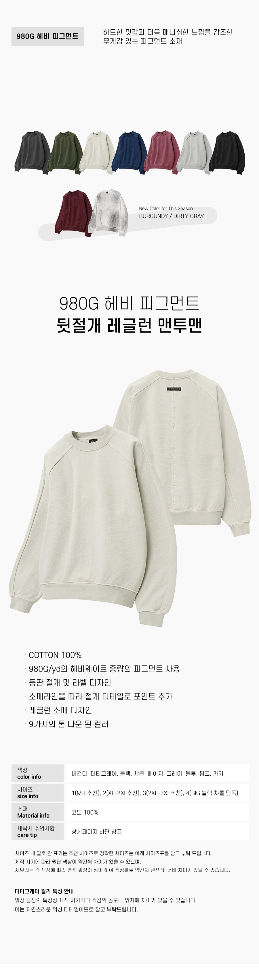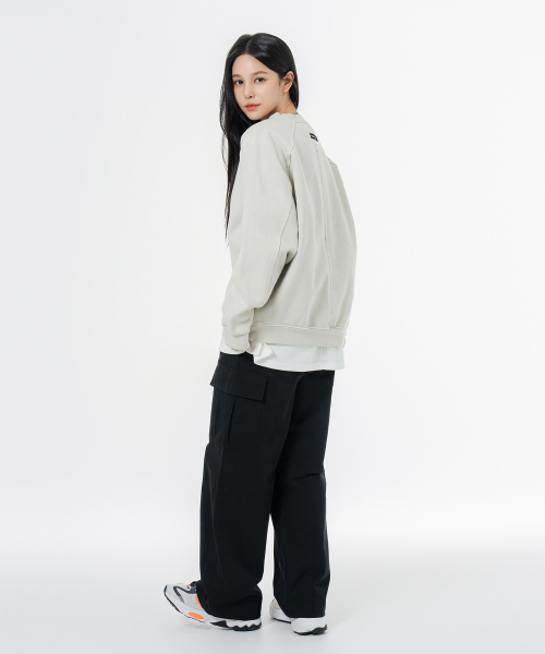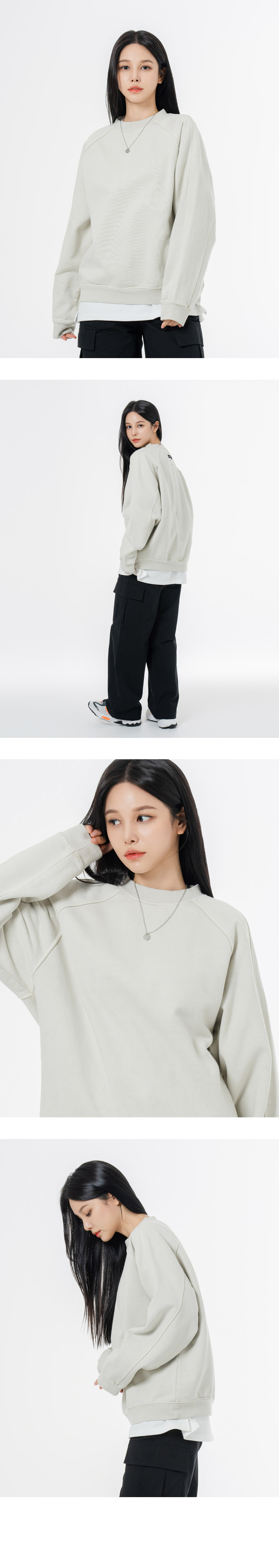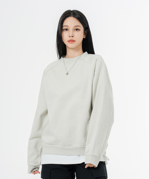 헤비 웨이트 피그먼트 나그랑 뒷절개 오버핏 맨투맨 베이지