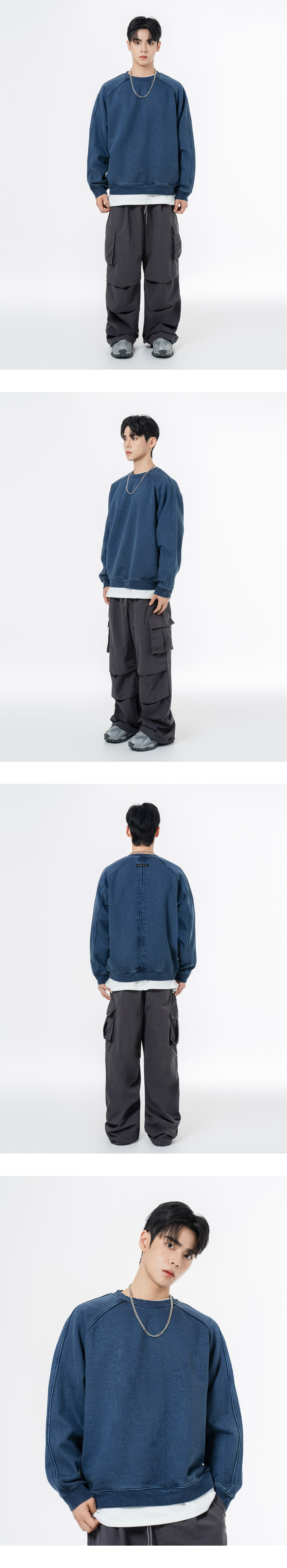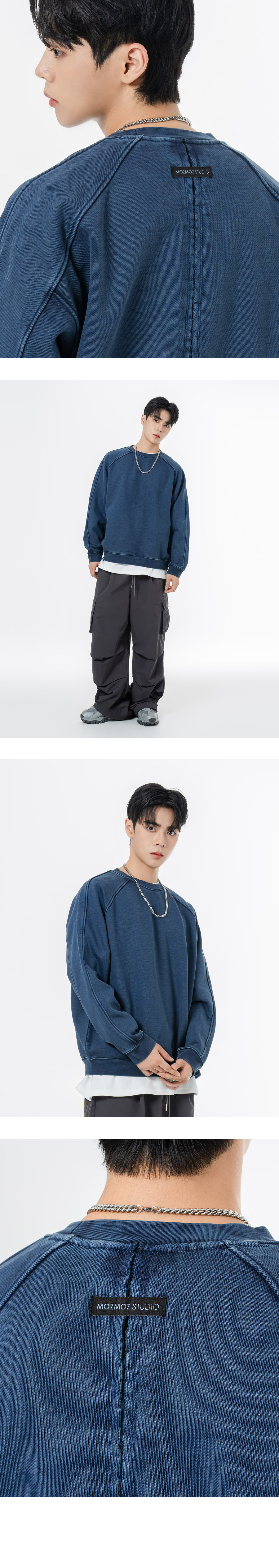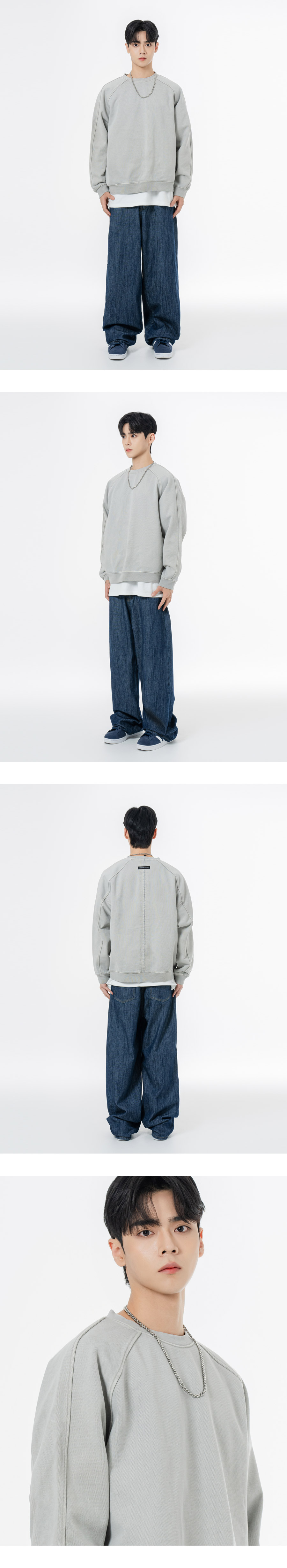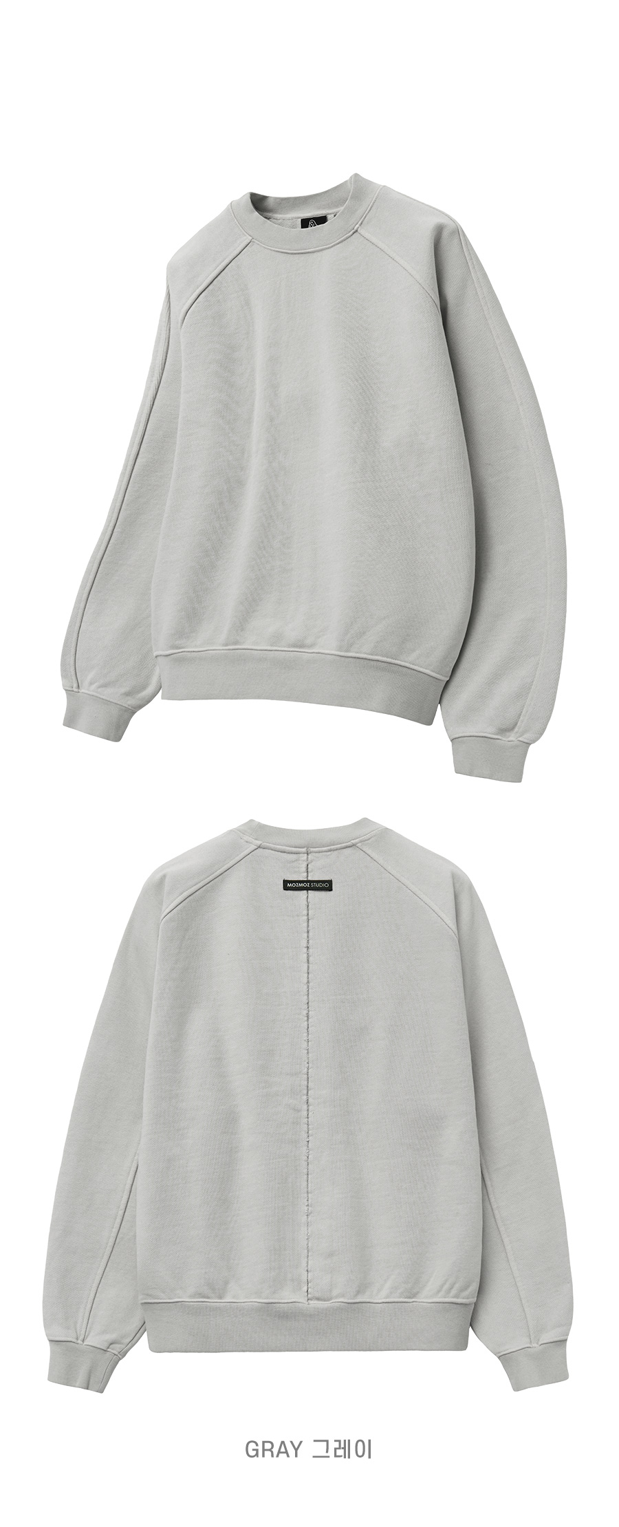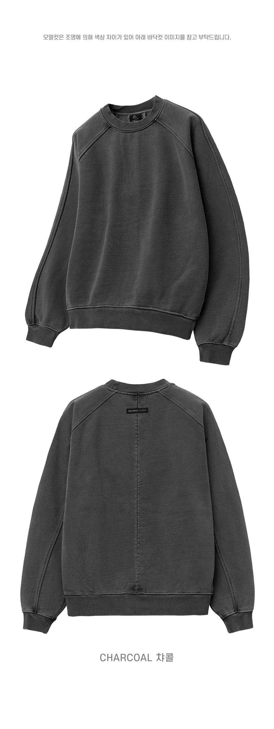 헤비 웨이트 피그먼트 나그랑 뒷절개 오버핏 맨투맨 챠콜