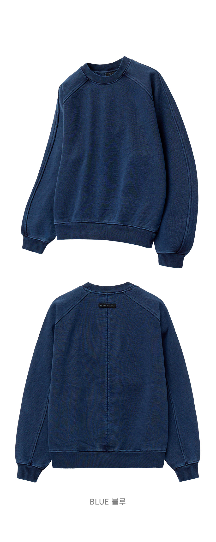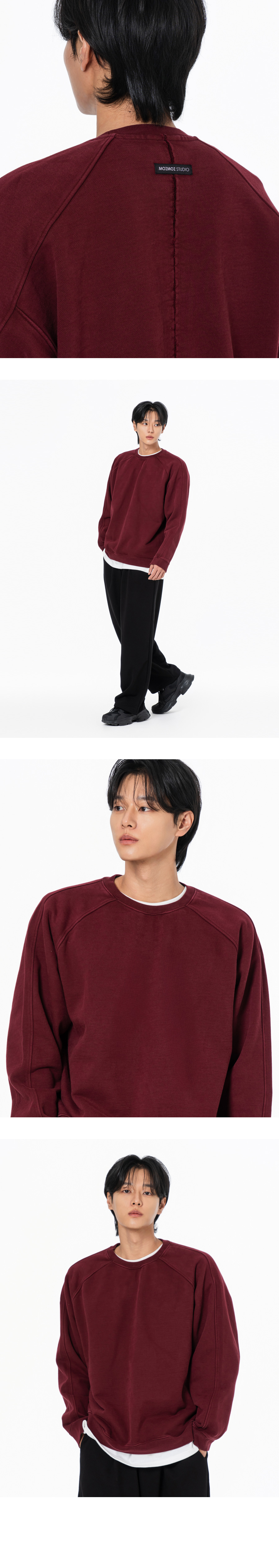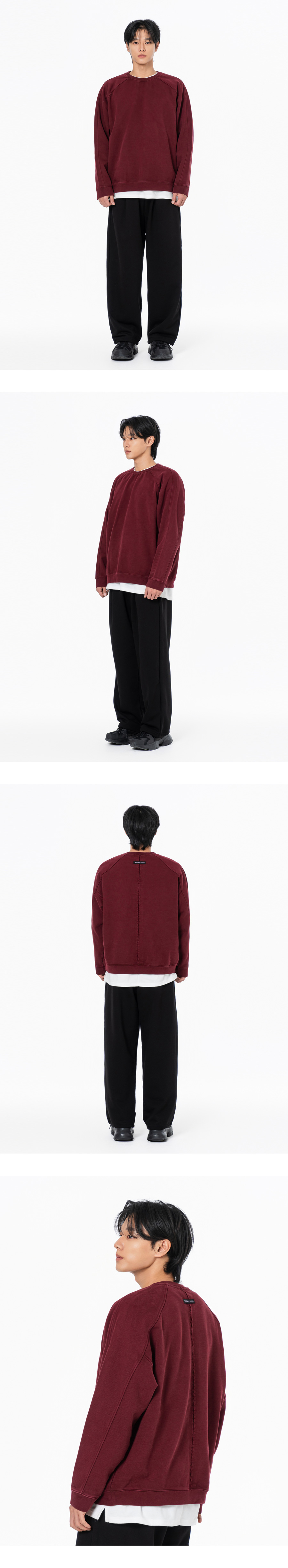 헤비 웨이트 피그먼트 나그랑 뒷절개 오버핏 맨투맨 블랙
