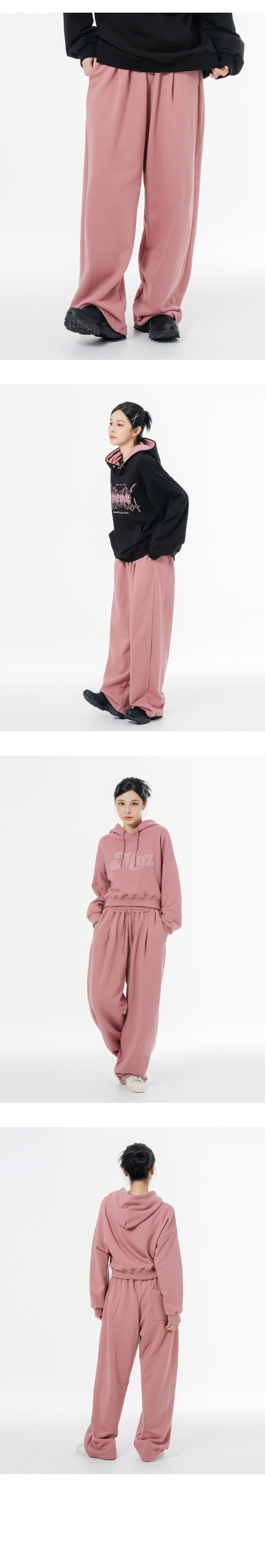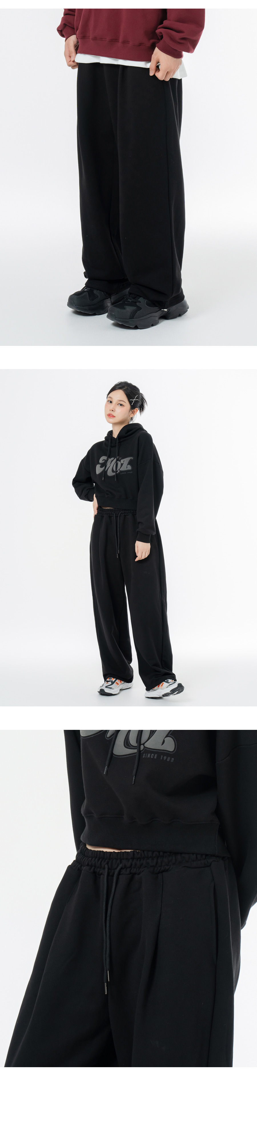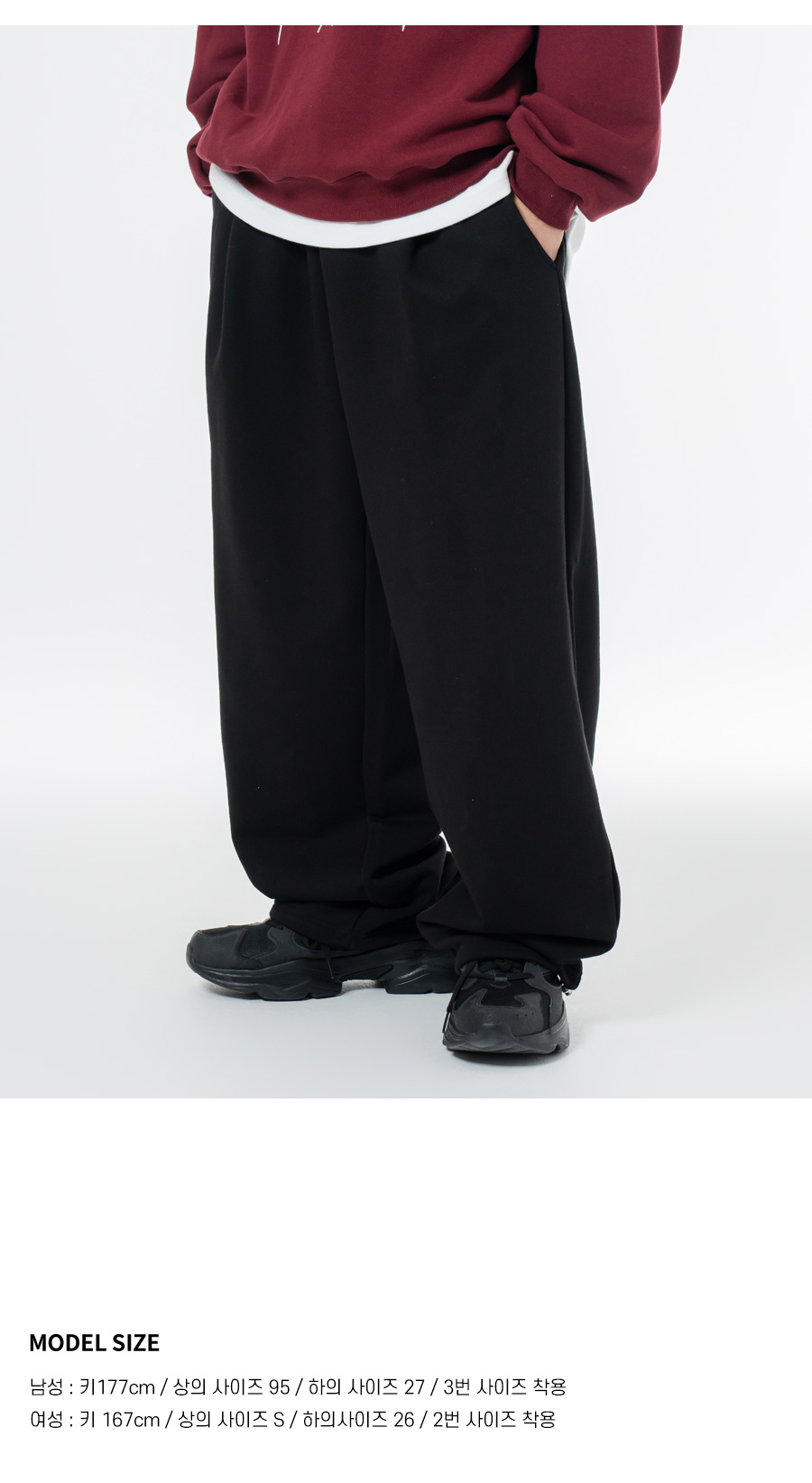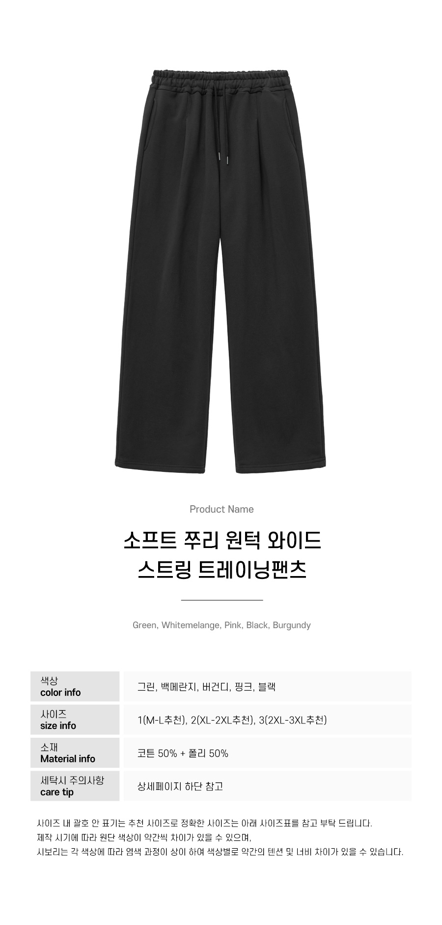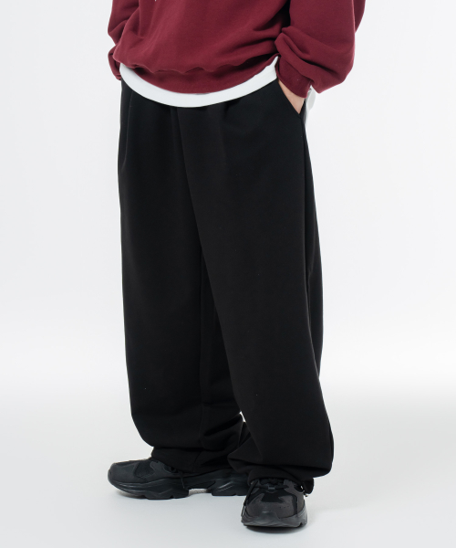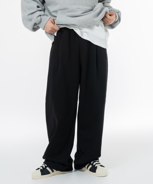 소프트 쭈리 원턱 와이드 스트링 트레이닝팬츠 블랙