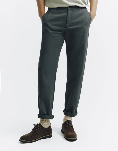 라이트웨이트 테이퍼드 히든 밴딩 크롭 슬랙스 [블루 그레이]