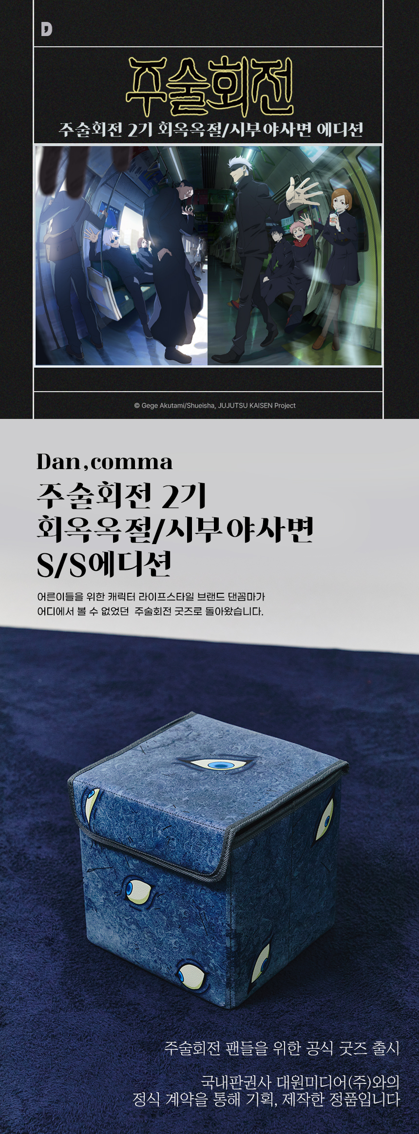 댄꼼마(DANCOMMA)는 브랜드 페르소나 캐릭터인 어른이 '댄(DAN)'의 쉼표라는 뜻으로, 어른이들을 위한 쉼표 같은 브랜드를 지향하고 있습니다. 어른이들이 좋아할 애니메이션, 캐릭터를 중심으로 다양한 라이프스타일 아이템을 전개합니다.