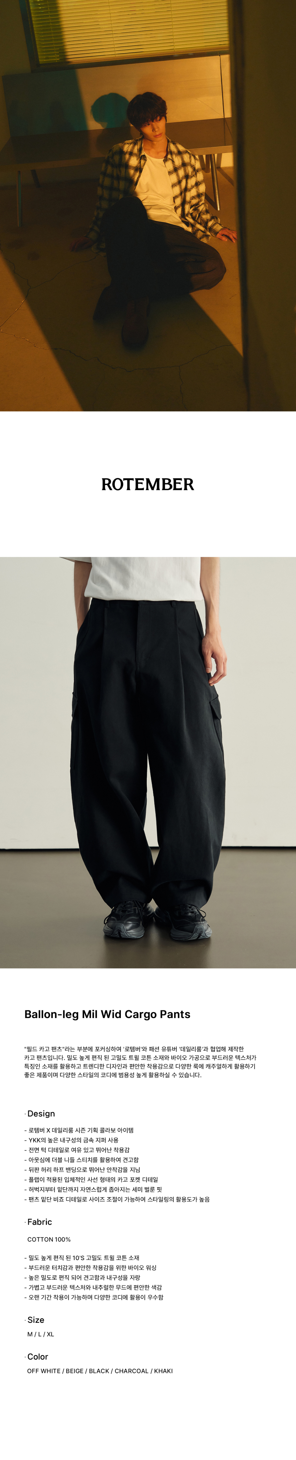 [데일리룸 X 로템버] 벌룬 레그 밀 와이드 카고 팬츠 [BLACK]