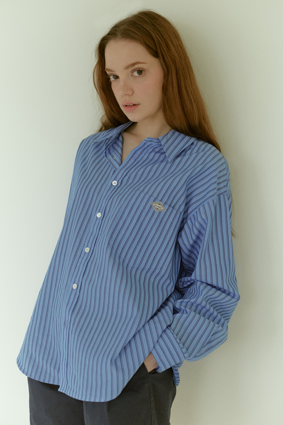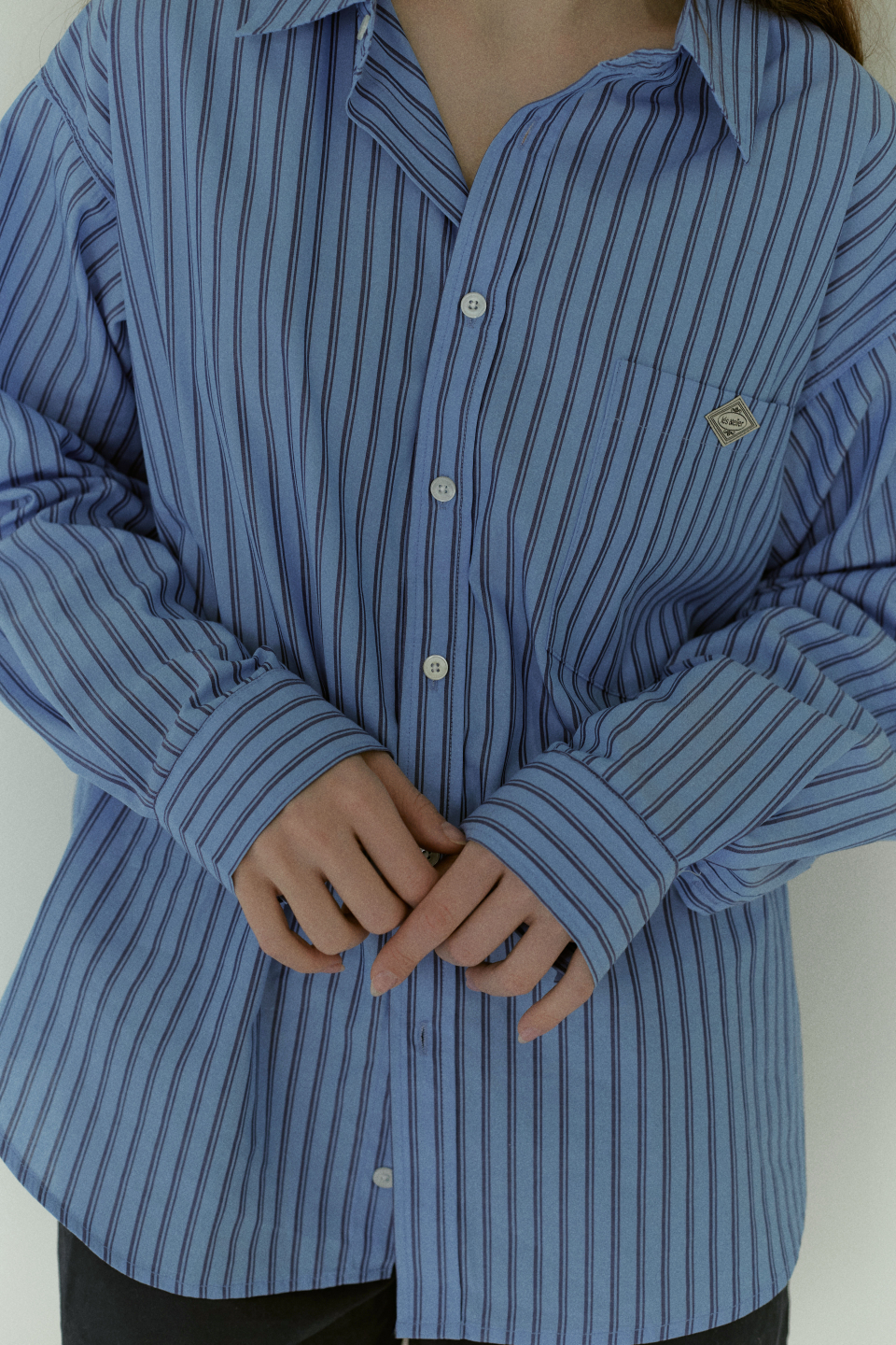 전체 더블스티치 봉제, 시접을 말아서 봉제하여 내구성이 높습니다 오버사이즈의 실루엣이며, 자개단추로 마무리하여 해가 지나도 변색이 없습니다