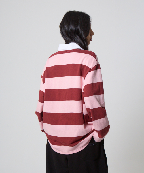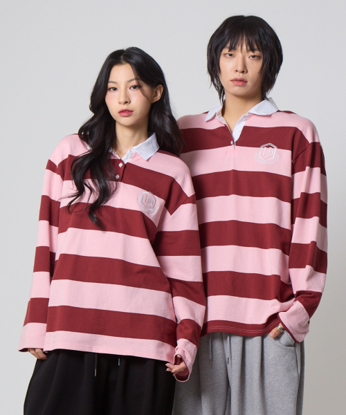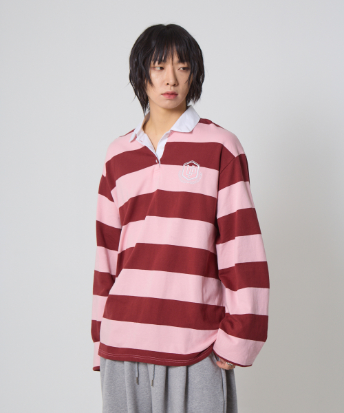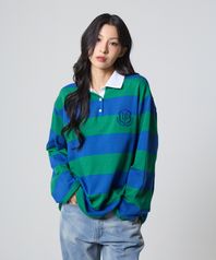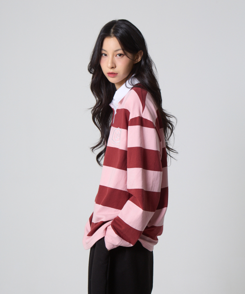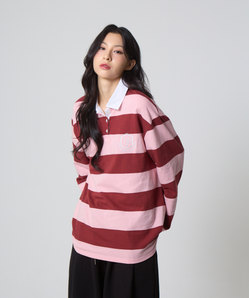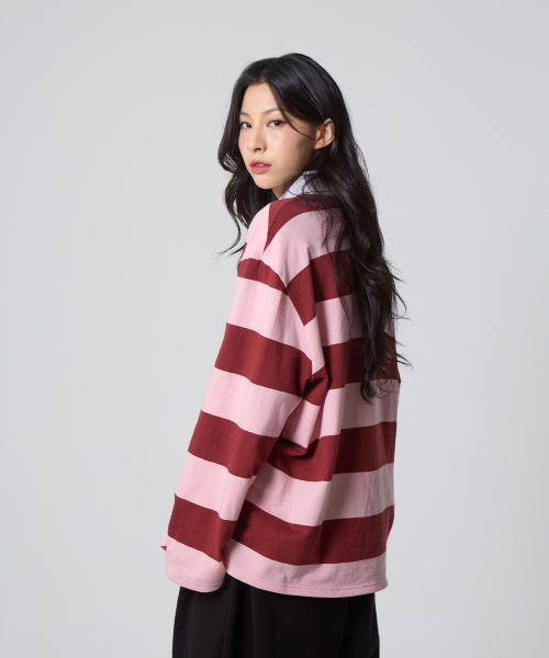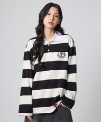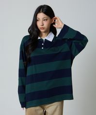 스트라이프 럭비 롱슬리브 오버핏 피케 카라 긴팔 폴로 티셔츠_3COLOR