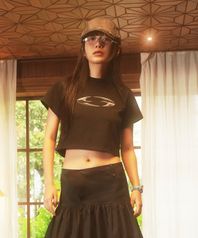 3D OVAL LOGO CROP T-SHIRTS [BLACK]